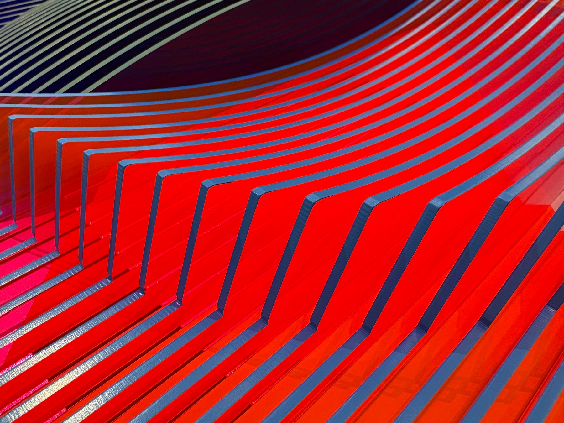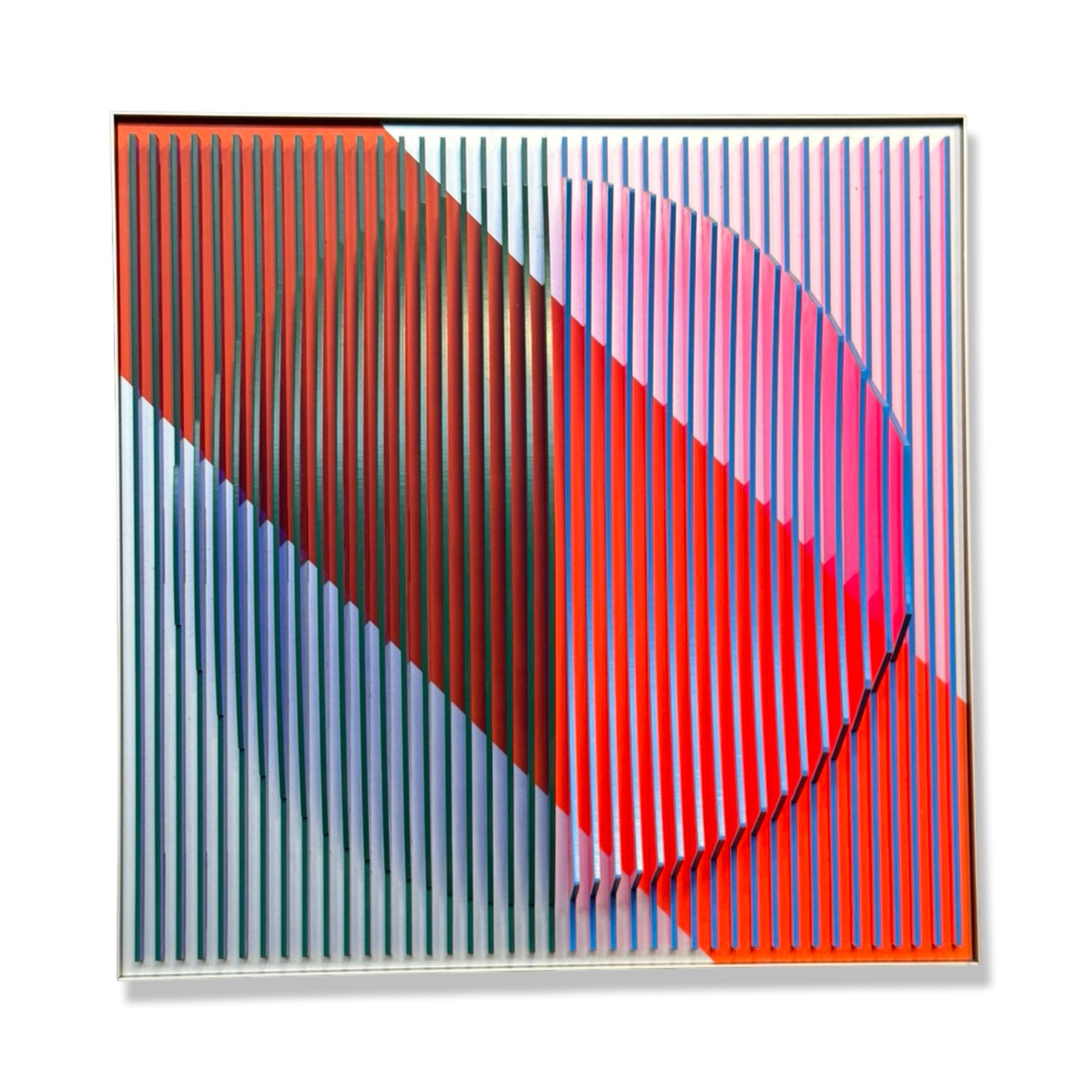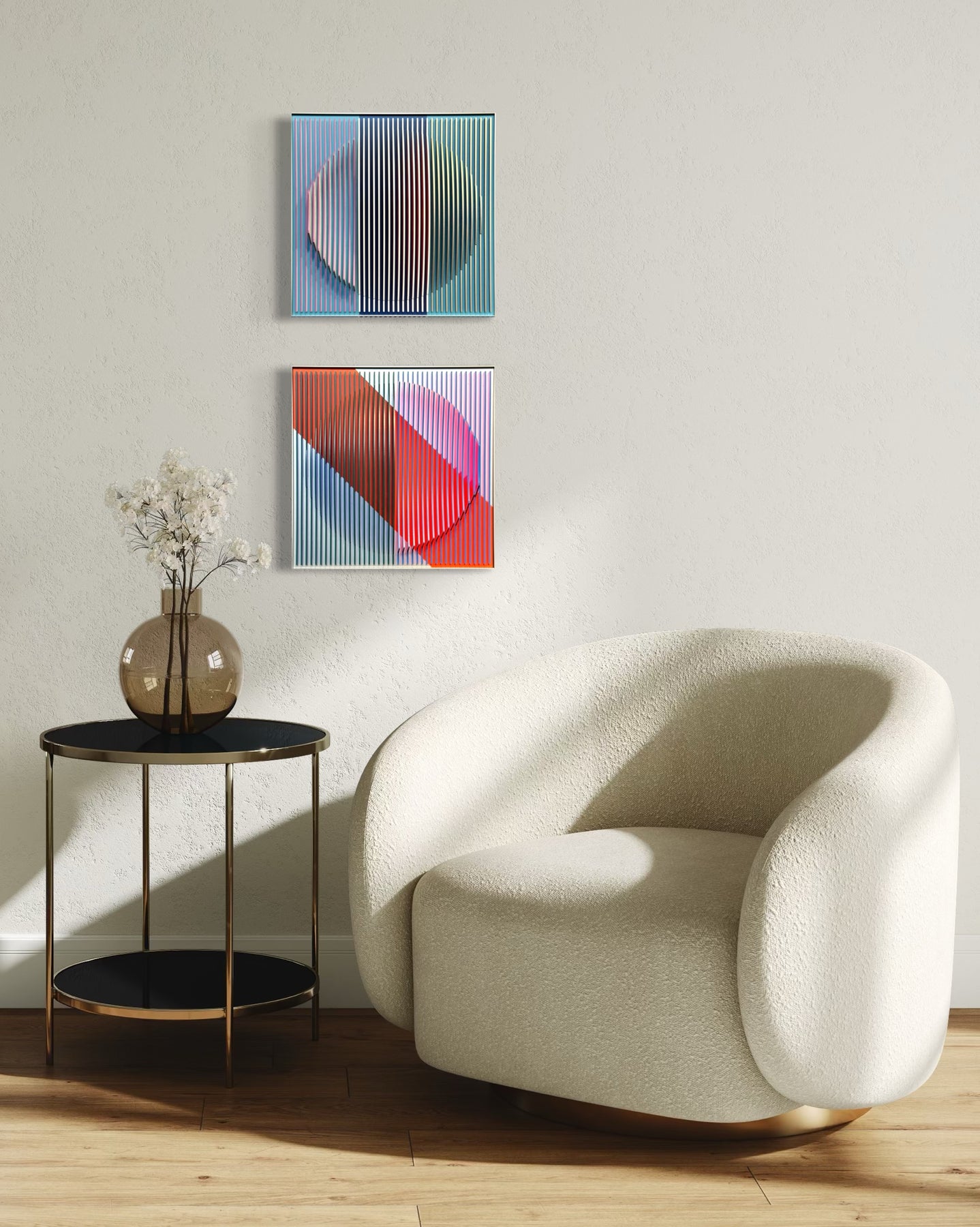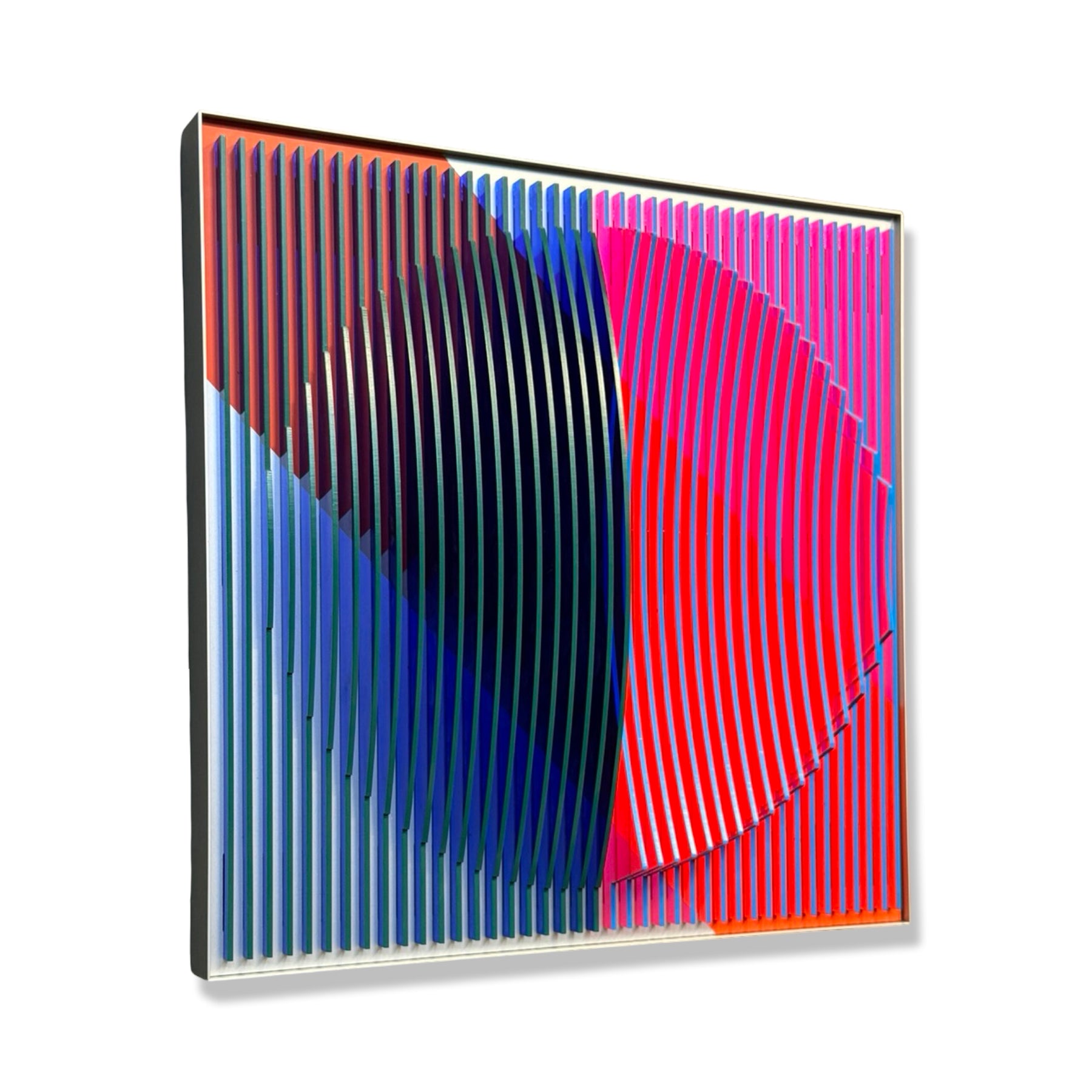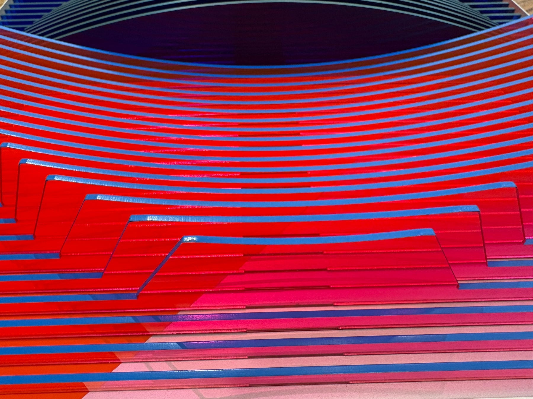 Margulis is drawn to scenes that allow him to explore composition in its most basic geometric forms: symmetry, asymmetry, volume, shapes, forms, limits, transitions and more. The challenge of creating balanced compositions in unexpected ways is fundamentally what attracts the artist’s eye and fuels his ideas. The artist begins with 3D digital software from which he designs and maps his 3D objects and compositions, ultimately cutting them into layers from different types of plastic and aluminum composites. Most of Jose’s work uses acrylic sheets and aluminum composites in various colors, textures, and patterns, often inspired further by traditional Mexican arts.