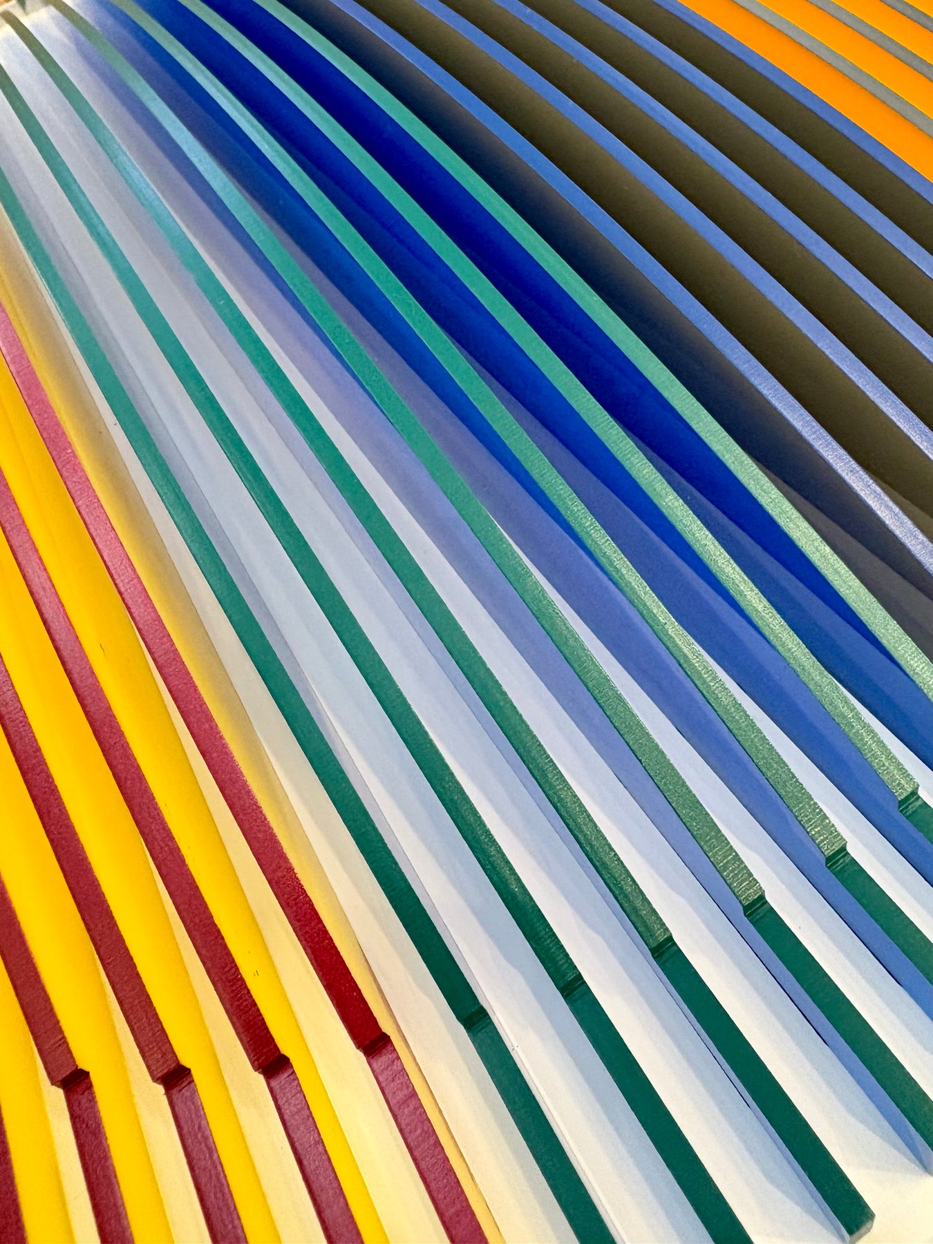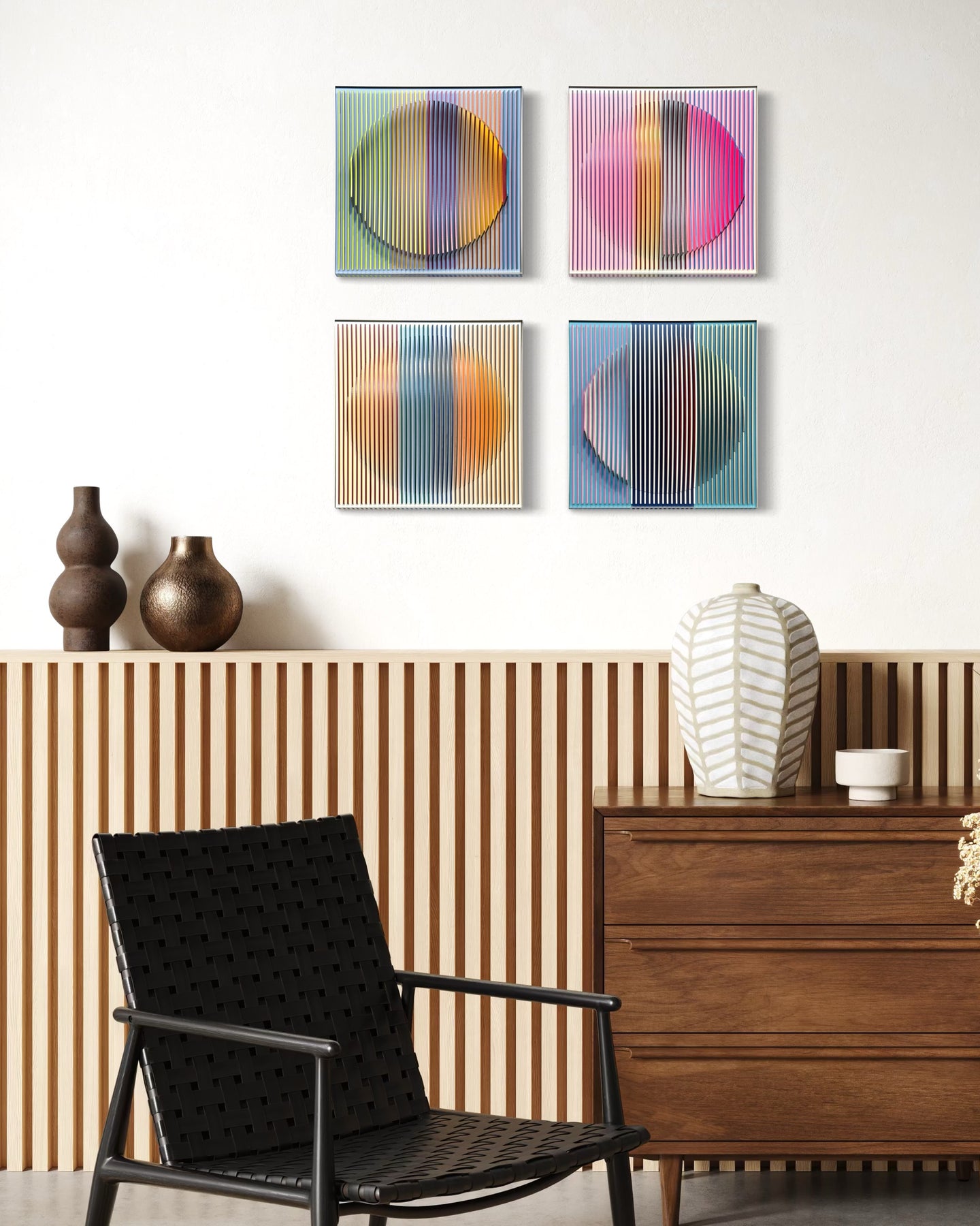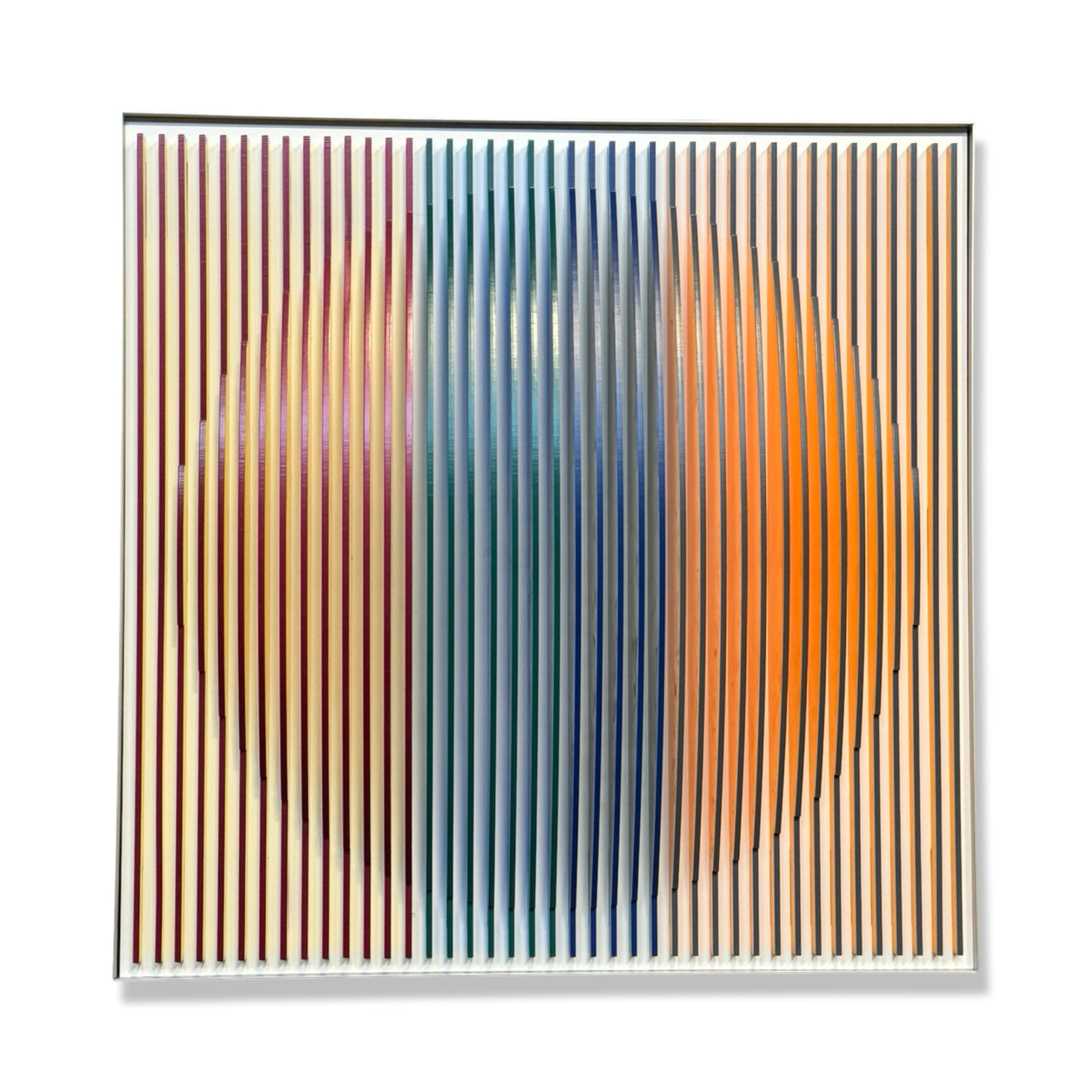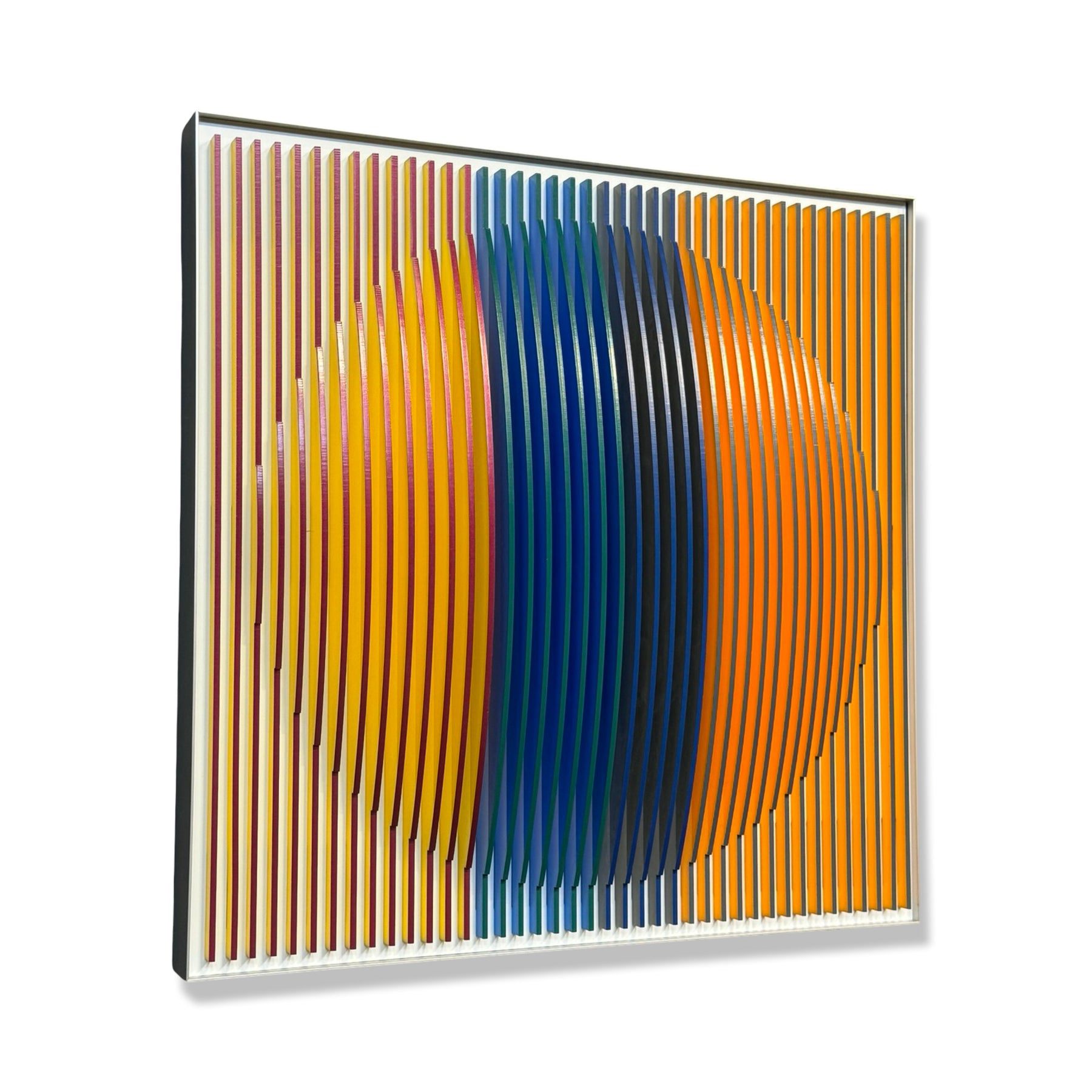 Margulis is drawn to scenes that allow him to explore composition in its most basic geometric forms: symmetry, asymmetry, volume, shapes, forms, limits, transitions and more. The challenge of creating balanced compositions in unexpected ways is fundamentally what attracts the artist’s eye and fuels his ideas. The artist begins with 3D digital software from which he designs and maps his 3D objects and compositions, ultimately cutting them into layers from different types of plastic and aluminum composites. Most of Jose’s work uses acrylic sheets and aluminum composites in various colors, textures, and patterns, often inspired further by traditional Mexican arts.