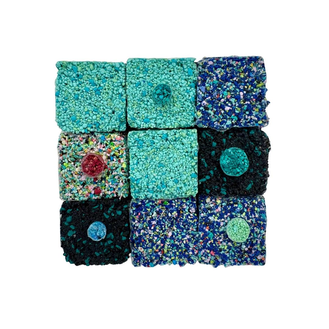Bob Landström is an artist who primarily works with crushed, pigmented volcanic rock. His abstract paintings, with their highly granulated texture and color combinations, only achieved through such a medium, reconsider our relationship with meaning by eliciting the iconography of ancient languages, science, religions, and mysticism.
