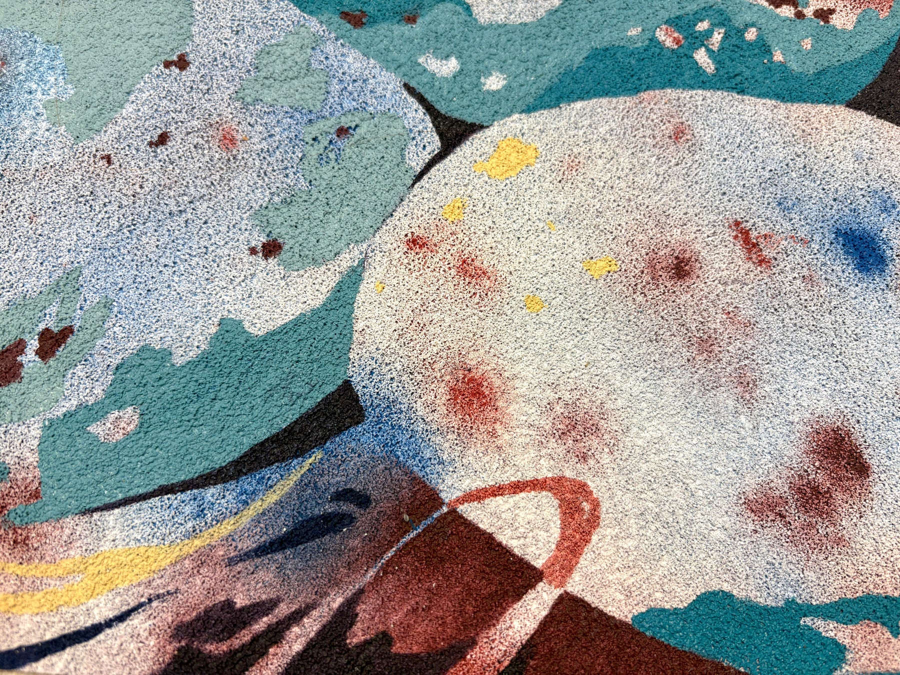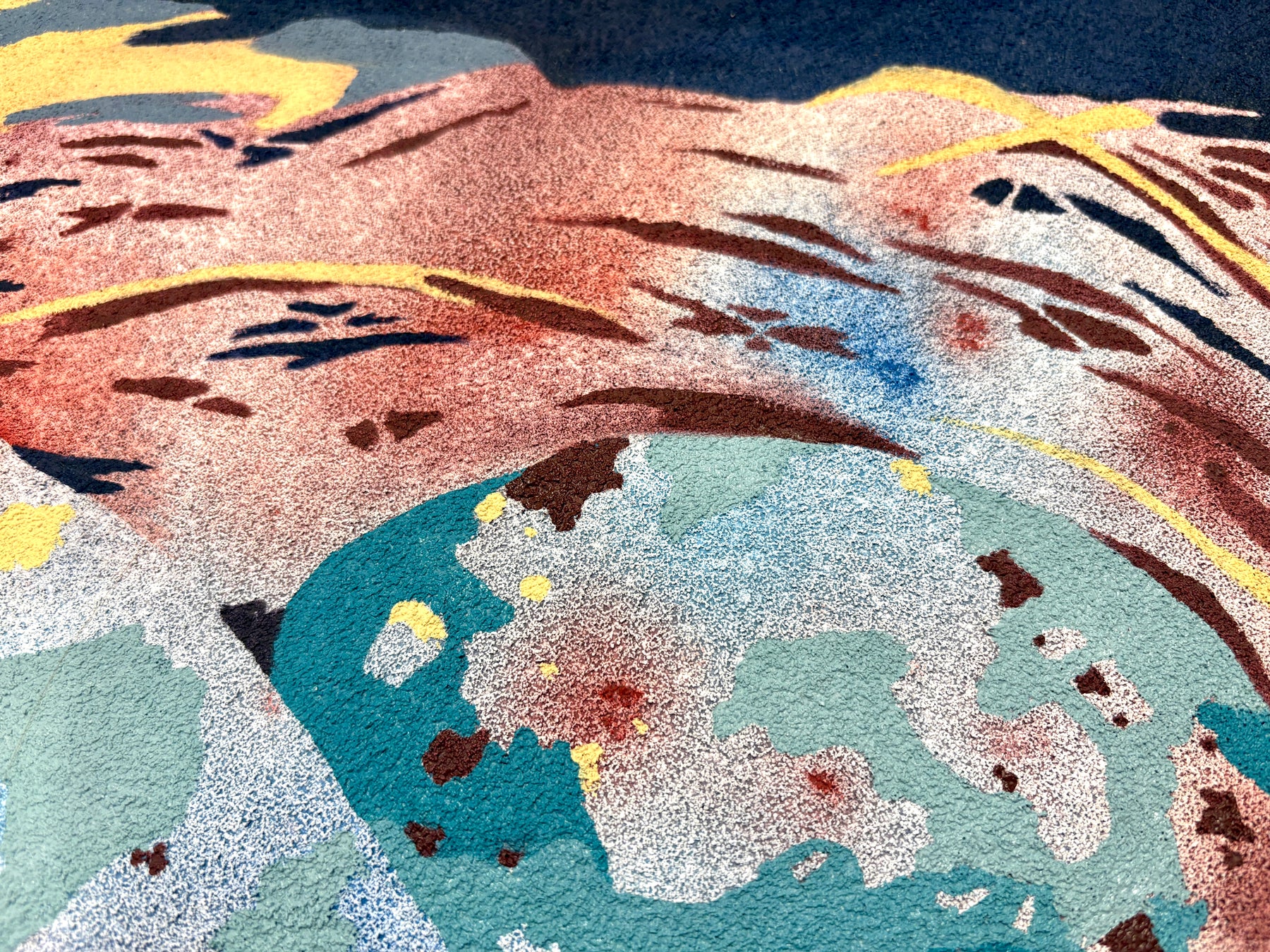 Erin Touey’s work straddles the line between abstraction and representation in her new series of pumice-primed canvas oil paintings. Touey utilizes fluid shapes, variation of line weight, non representational color, distortion of perspective, and in this series, the texture of the pumice primed canvas to bring her often tangible subject matter into the abstract realm. With a limited palette consisting only of Phthalo Blue, Cadmium Yellow, and Quinacridone Magenta, Touey challenges herself to mix all of her colors. The white of the canvas is preserved deliberately, the negative space making shapes that sometimes jump forward or fall back.