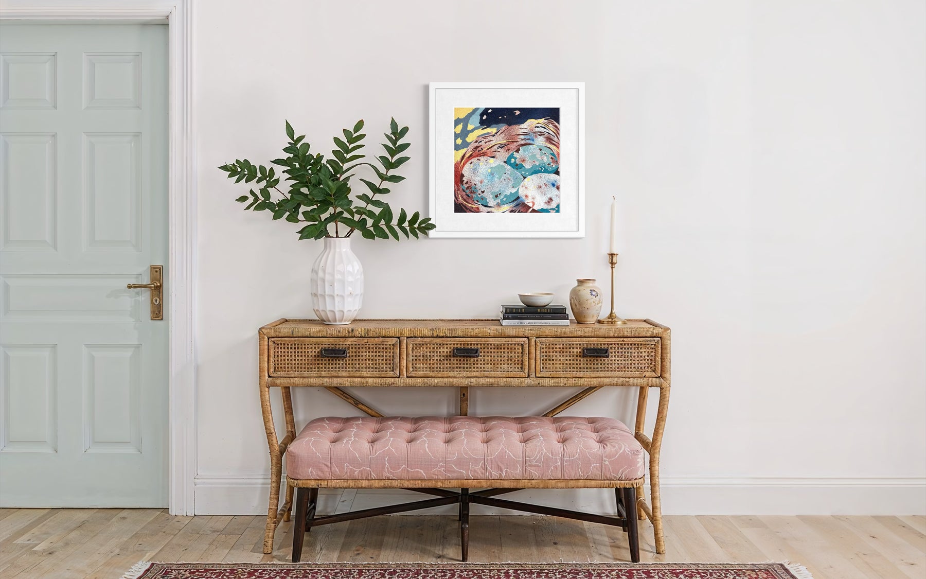 - Size: 14" x 14" original painting in a 17" x 17" white window matting