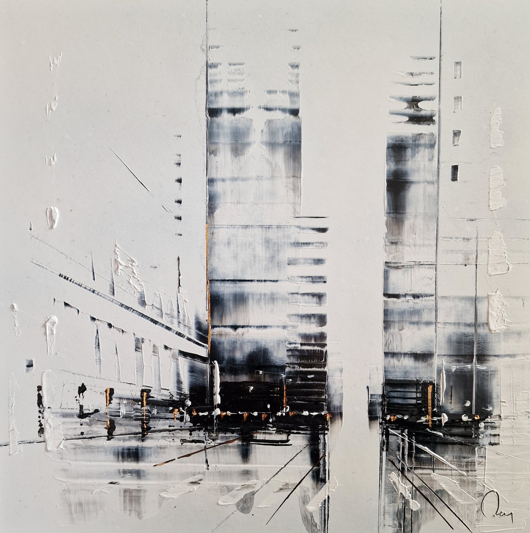 Julien Rey's story begins like all great stories: with an impossible dream. With achromatopsia (the absence of color vision), the artist sees only in black and white. Yet, this condition did not prevent him from traveling to the borders of Burma, from changing his life (he became a Buddhist monk), or from embarking on his art. From his trip to Burma, he brought back a perfect mastery of gold leaf and Chinese lacquer, a characteristic element in his work. His technique based on lacquer worked with a knife and gold leaf inlays places light at the center of his works. Marked by Zen philosophy, he creates minimal compositions that appear as suspended moments and poetic pauses. Julien Rey takes us on a journey through his paintings to urban landscapes and far-off lands.