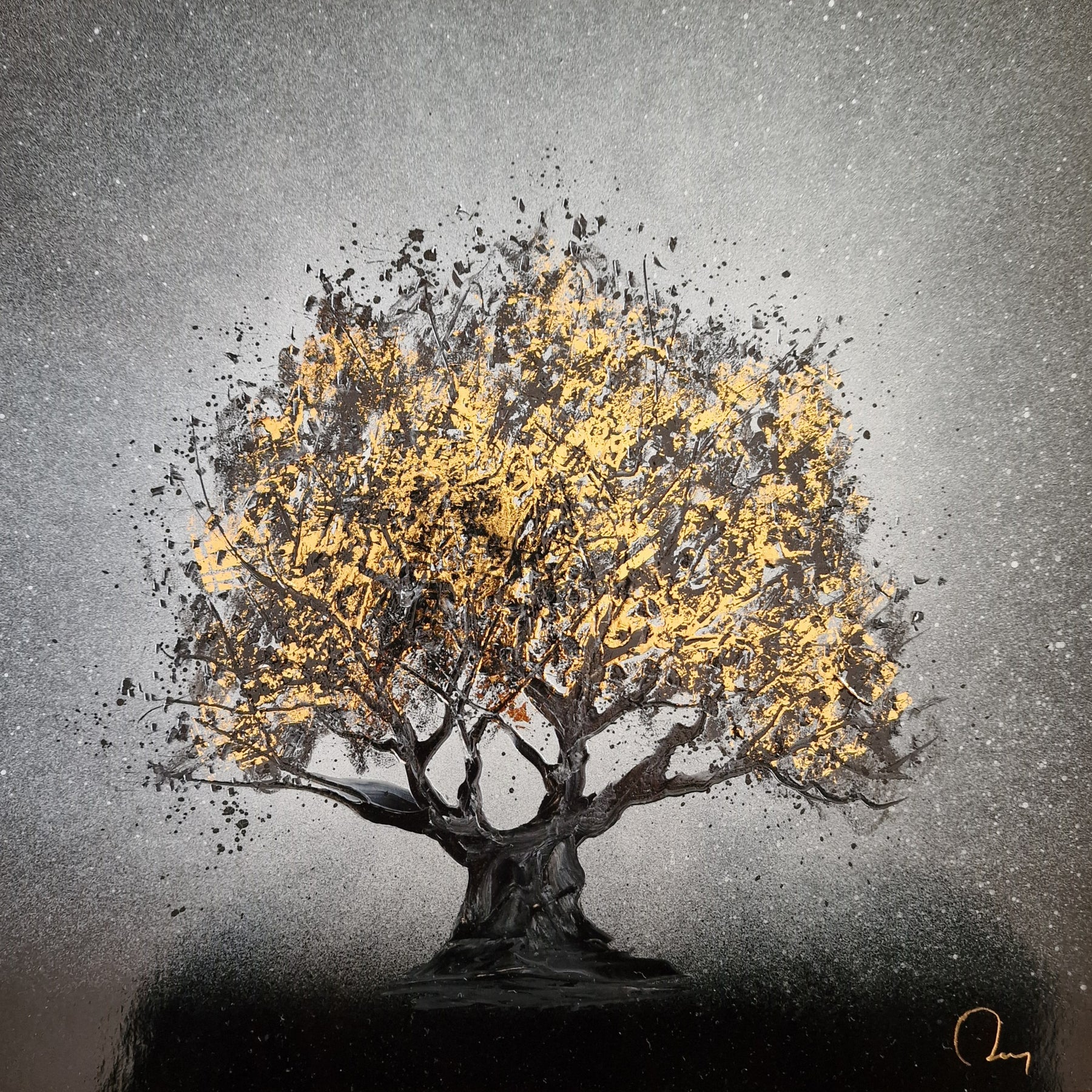 Julien Rey's story begins like all great stories: with an impossible dream. With achromatopsia (the absence of color vision), the artist sees only in black and white. Yet, this condition did not prevent him from traveling to the borders of Burma, from changing his life (he became a Buddhist monk), or from embarking on his art. From his trip to Burma, he brought back a perfect mastery of gold leaf and Chinese lacquer, a characteristic element in his work. His technique based on lacquer worked with a knife and gold leaf inlays places light at the center of his works. Marked by Zen philosophy, he creates minimal compositions that appear as suspended moments and poetic pauses. Julien Rey takes us on a journey through his paintings to urban landscapes and far-off lands.