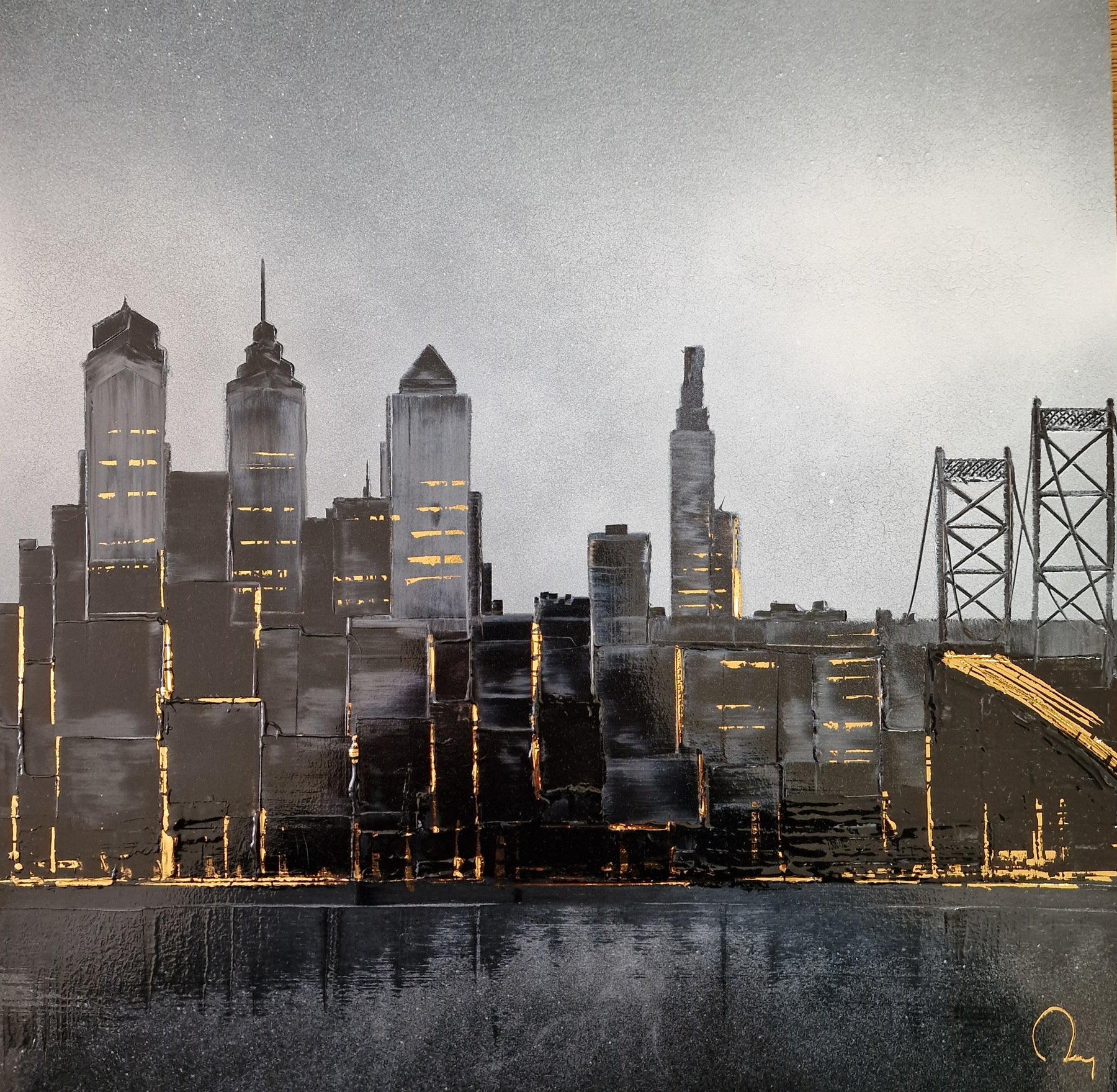 Julien Rey's story begins like all great stories: with an impossible dream. With achromatopsia (the absence of color vision), the artist sees only in black and white. Yet, this condition did not prevent him from traveling to the borders of Burma, from changing his life (he became a Buddhist monk), or from embarking on his art. From his trip to Burma, he brought back a perfect mastery of gold leaf and Chinese lacquer, a characteristic element in his work. His technique based on lacquer worked with a knife and gold leaf inlays places light at the center of his works. Marked by Zen philosophy, he creates minimal compositions that appear as suspended moments and poetic pauses. Julien Rey takes us on a journey through his paintings to urban landscapes and far-off lands.