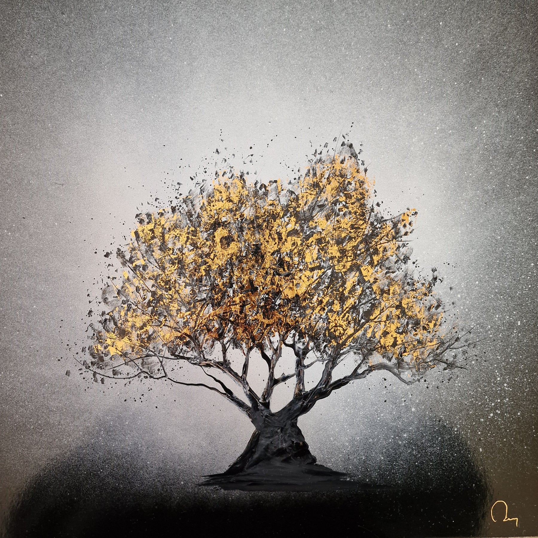 Julien Rey's story begins like all great stories: with an impossible dream. With achromatopsia (the absence of color vision), the artist sees only in black and white. Yet, this condition did not prevent him from traveling to the borders of Burma, from changing his life (he became a Buddhist monk), or from embarking on his art. From his trip to Burma, he brought back a perfect mastery of gold leaf and Chinese lacquer, a characteristic element in his work. His technique based on lacquer worked with a knife and gold leaf inlays places light at the center of his works. Marked by Zen philosophy, he creates minimal compositions that appear as suspended moments and poetic pauses. Julien Rey takes us on a journey through his paintings to urban landscapes and far-off lands.