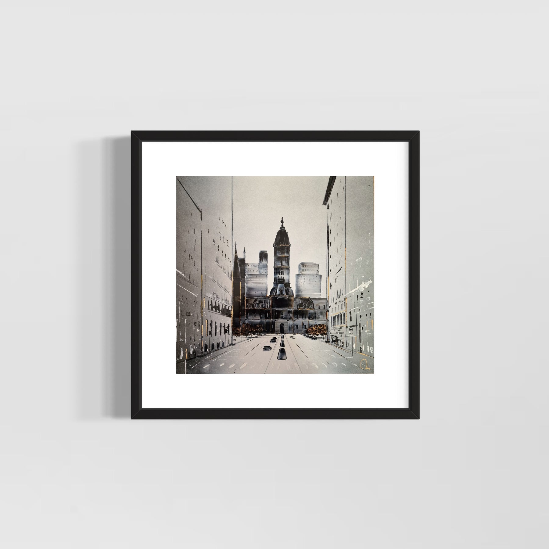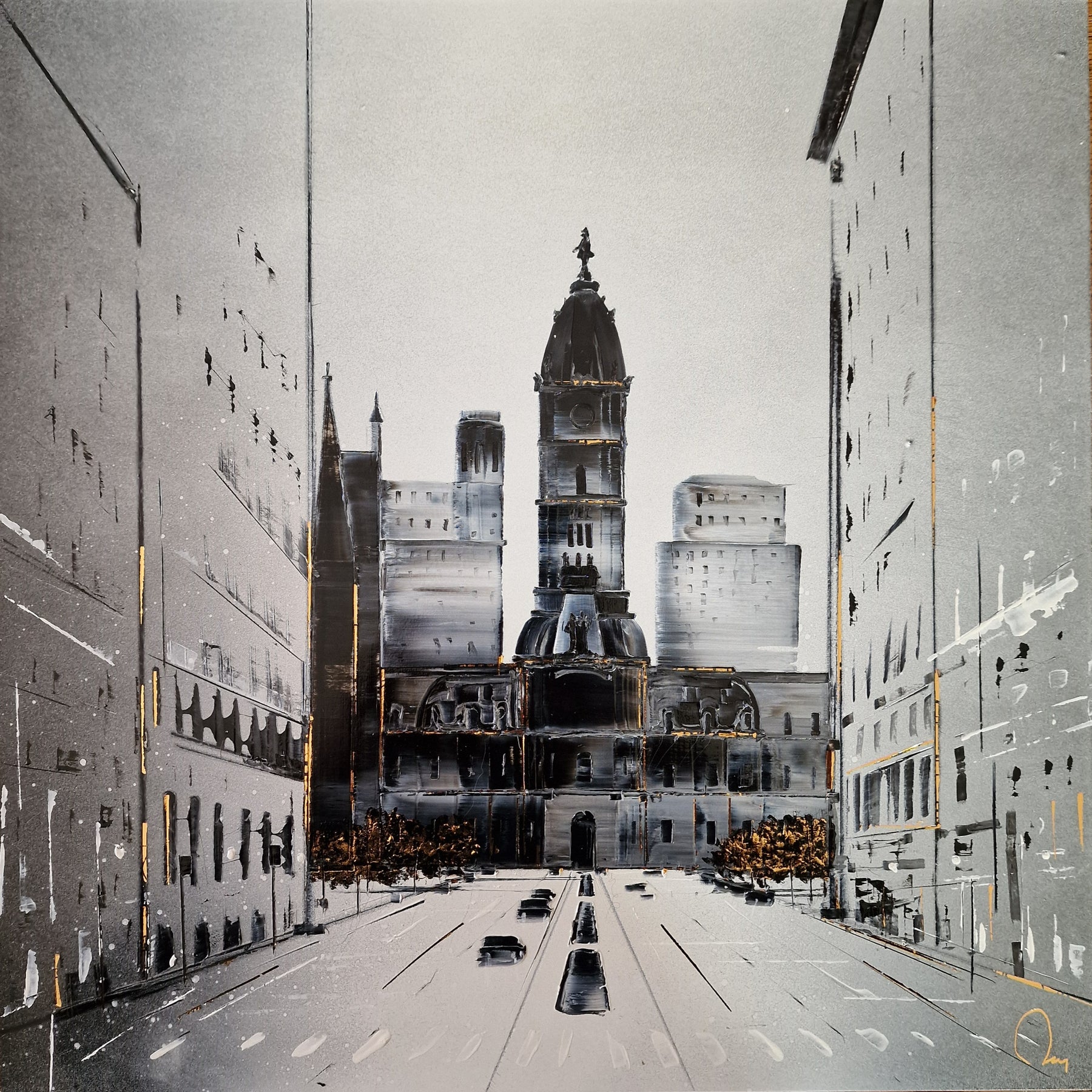 Julien Rey's story begins like all great stories: with an impossible dream. With achromatopsia (the absence of color vision), the artist sees only in black and white. Yet, this condition did not prevent him from traveling to the borders of Burma, from changing his life (he became a Buddhist monk), or from embarking on his art. From his trip to Burma, he brought back a perfect mastery of gold leaf and Chinese lacquer, a characteristic element in his work. His technique based on lacquer worked with a knife and gold leaf inlays places light at the center of his works. Marked by Zen philosophy, he creates minimal compositions that appear as suspended moments and poetic pauses. Julien Rey takes us on a journey through his paintings to urban landscapes and far-off lands.