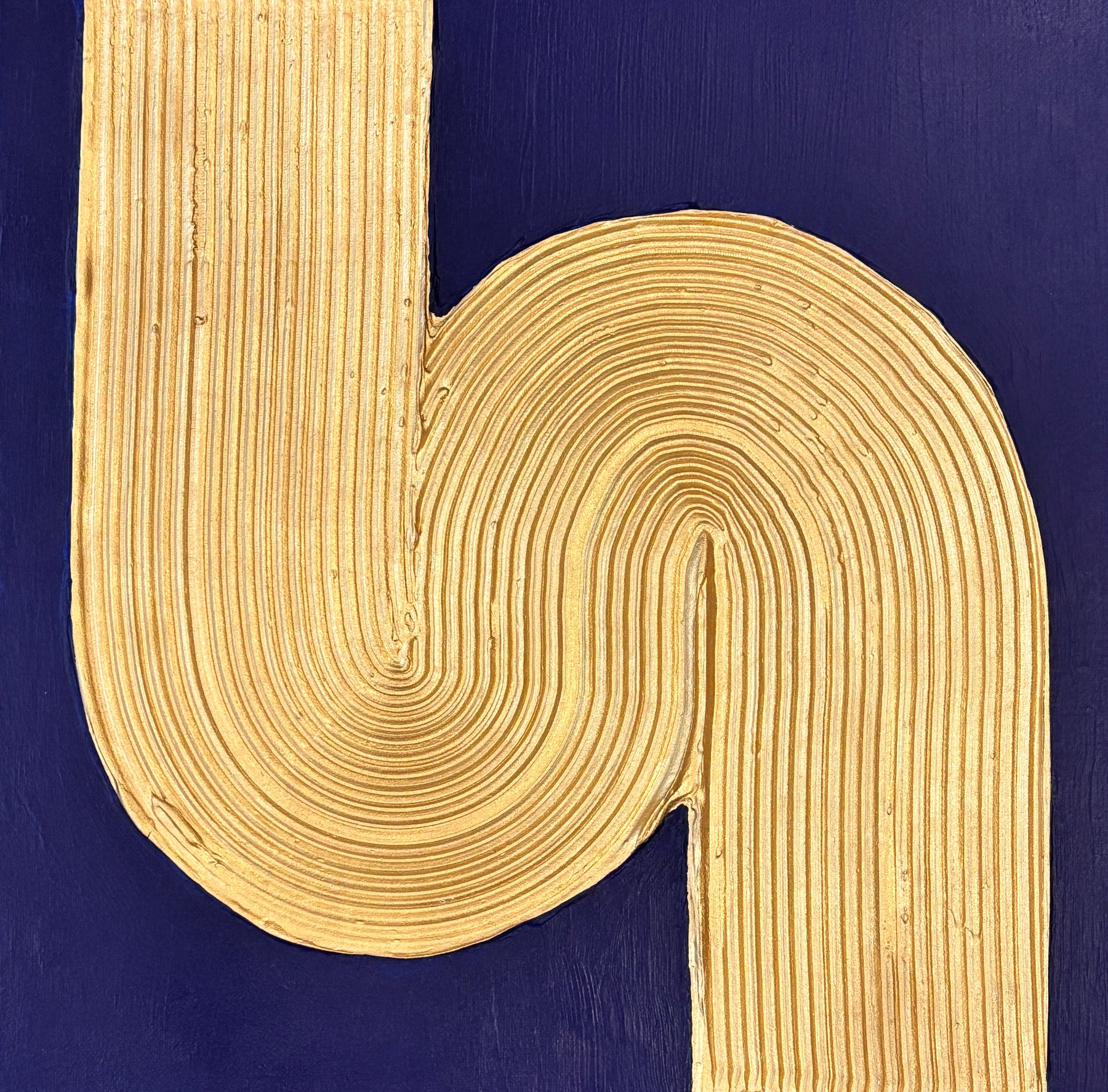 Jerilee, a Philadelphia-based artist working under the name ‘Lee in Cerulean’, creates striking minimalist pieces. For Lee, simple curves, asymmetry, and overlapping forms reflect the beautiful world around us—and find, within our surroundings, the continuity, serendipity, and at times mundane nature of everyday life. Deriving from the Japanese Wabi-Sabi philosophy’s embrace of imperfection, highly textural pieces show Lee’s freeform strokes, using a blend of joint compound, acrylic paint, and a myriad of other media. Under this philosophical orientation, ridges and built-up materials are a reminder that we continue to evolve, just as nature does.