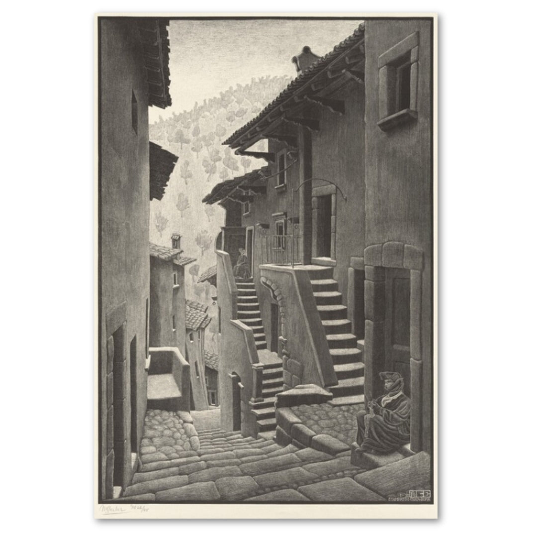 Maurits Cornelis Escher (1898-1972) is one of the world’s most famous graphic artists and is known for his iconic optical illusions. His lithographs, woodcuts, engravings, and drawings expressed a high level of technical expertise and meticulous attention to detail. Their puzzling depictions of tessellating staircases and interlocking spaces offered up visual conundrums to the viewer.