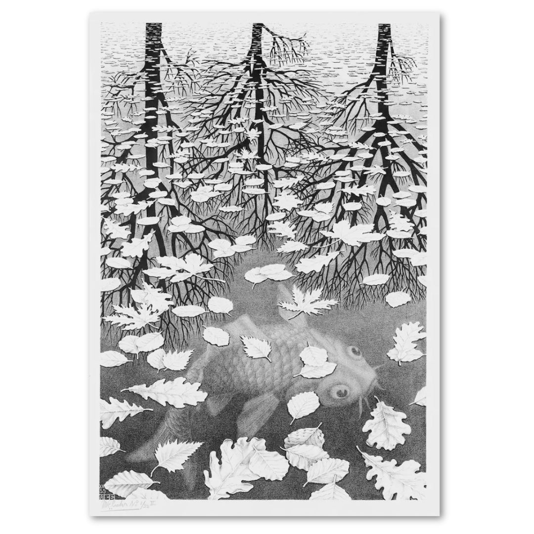 Maurits Cornelis Escher (1898-1972) is one of the world’s most famous graphic artists and is known for his iconic optical illusions. His lithographs, woodcuts, engravings, and drawings expressed a high level of technical expertise and meticulous attention to detail. Their puzzling depictions of tessellating staircases and interlocking spaces offered up visual conundrums to the viewer.