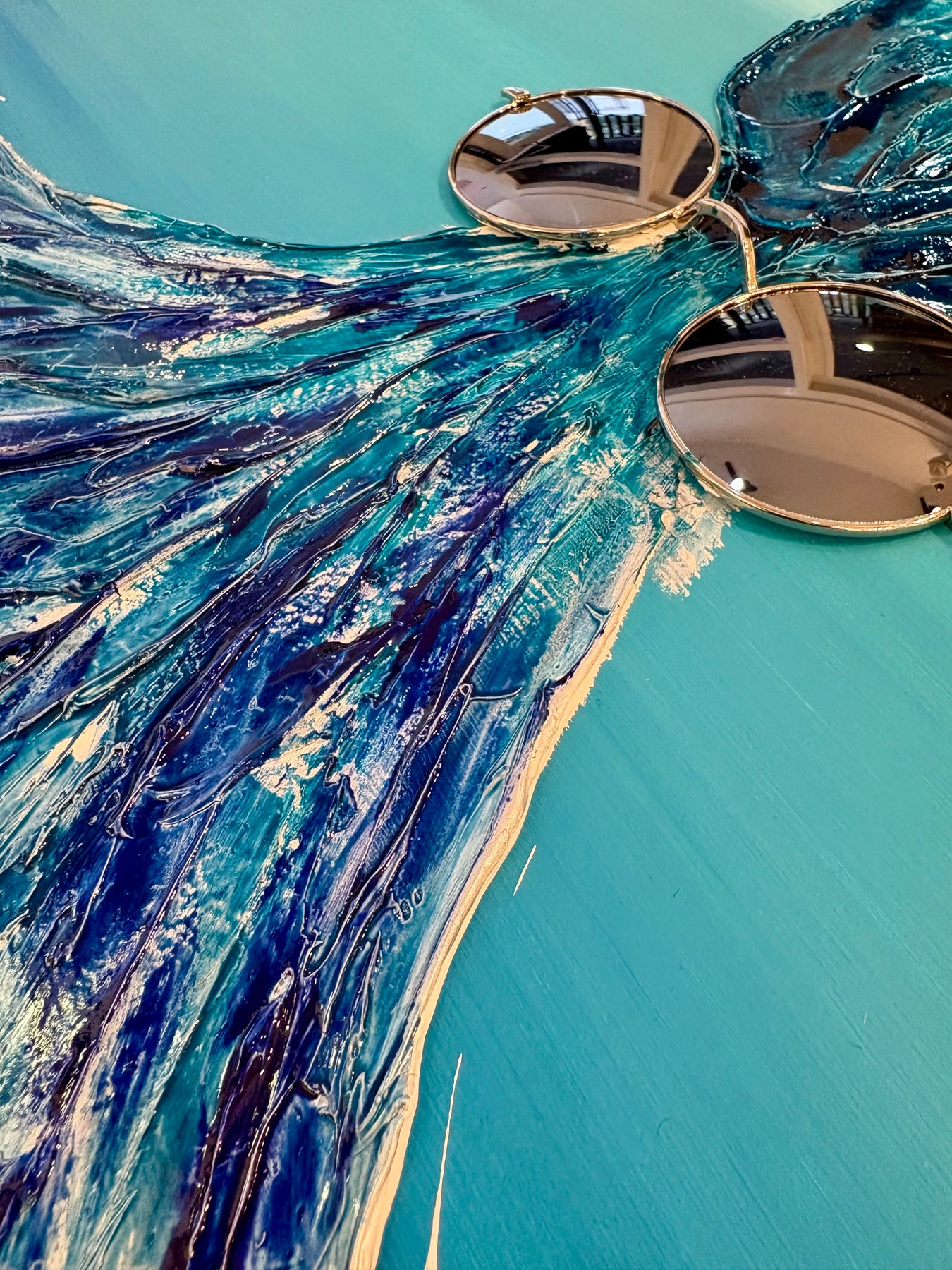 • Acrylic, resin and collage on board