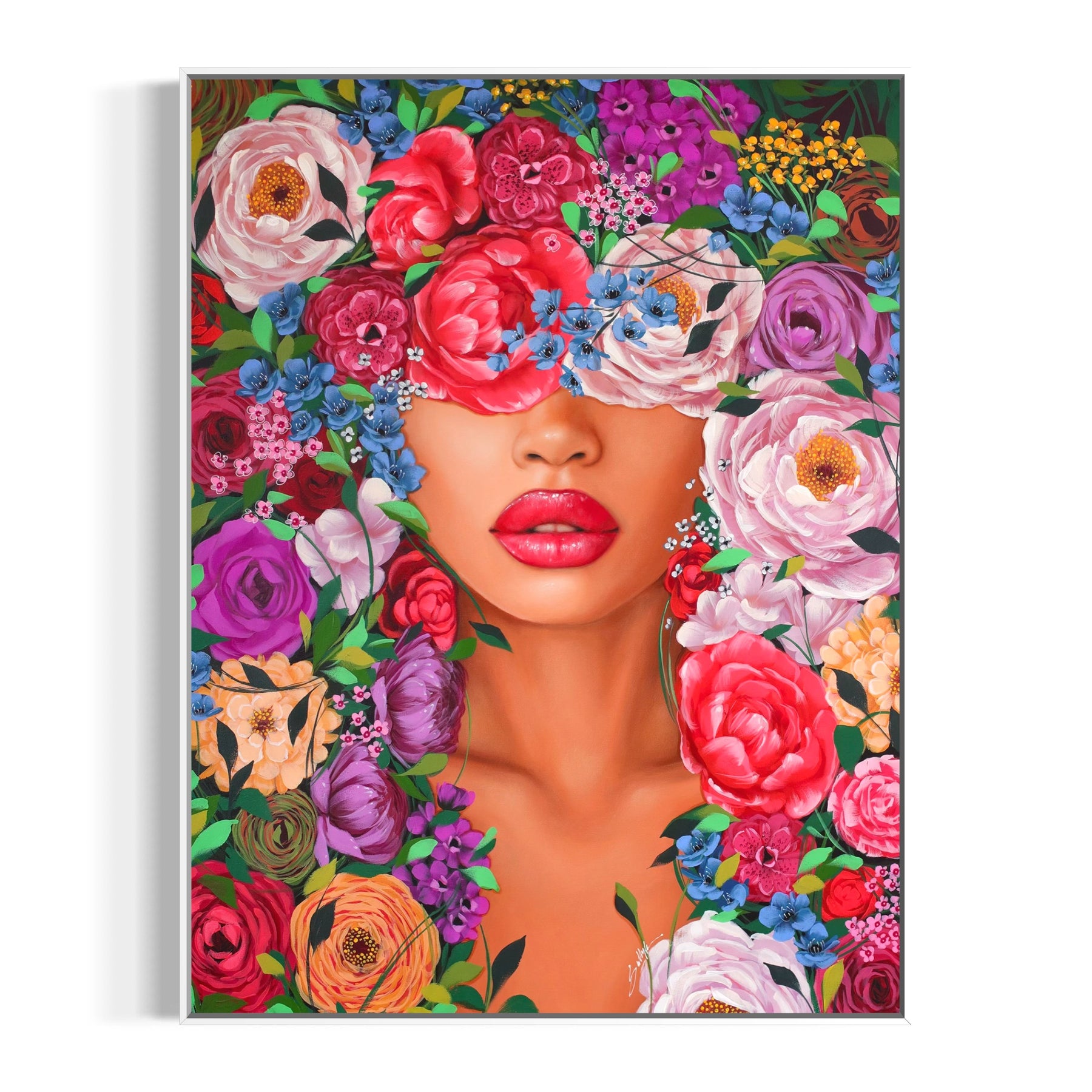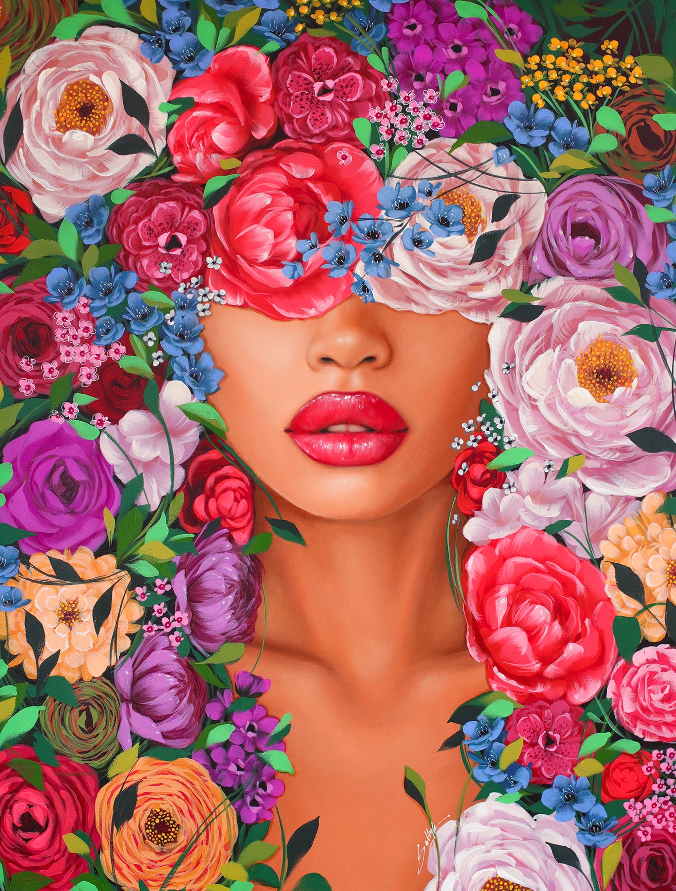 Lebanese portraiture artist Sally Khoury (Sally K) paints the feminine gaze in vivid color. Taking inspiration from fashion, pop culture, and photography, Khoury blends realistic and abstract elements to communicate the totality of the female form, which is often both mischievous and serious, sensual and aloof. Her paintings can be found in the private collections of American pop stars Jesse McCartney and Kelly Clarkson.