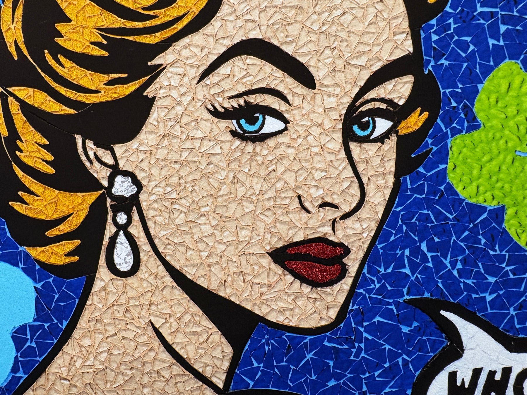 Sarah Fishbein, a contemporary glass mosaic artist based in the Atlantic Highlands of New Jersey, has been pushing the boundaries of visual art for nearly 20 years. Initially grounded in editorial video production, Fishbein artistic journey has led her to embrace the bold, graphic style of Lichtenstein Pop Art Mosaics. She infuses her mosaics with the vibrant, comic-book aesthetic of 1950s and romance comics, creating striking reinterpretations of pop culture through the timeless medium of glass.