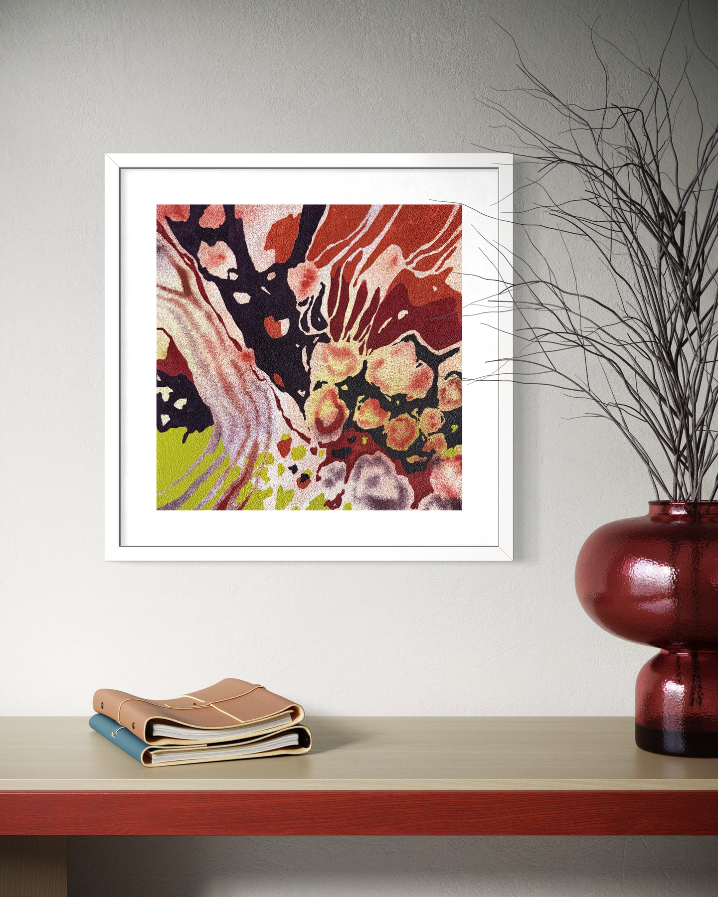 • Size: 14" x 14" original painting in a 17" x 17" white window matting