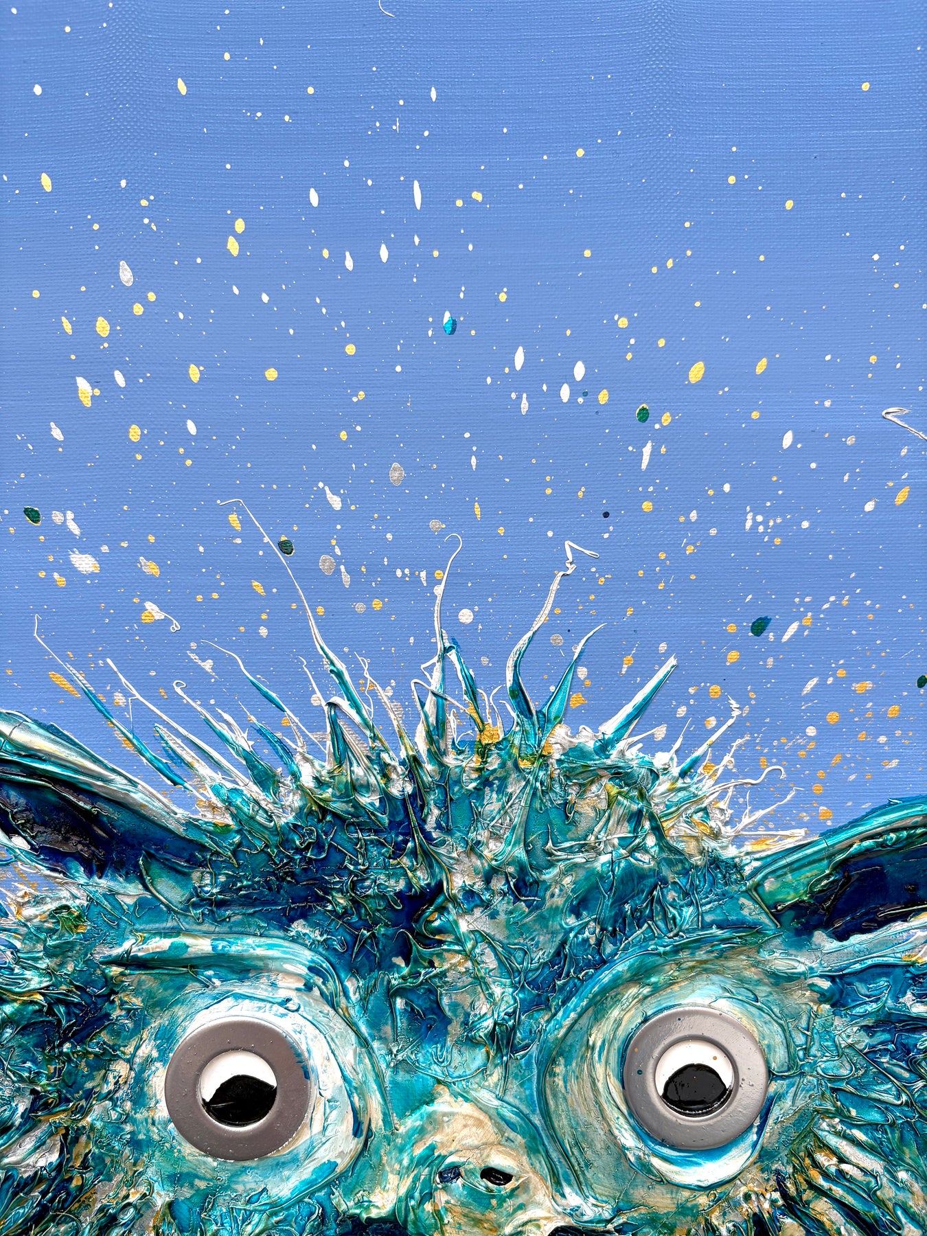 French graphic designer, illustrator, and painter Moogly creates semi-abstract "humanimal" portraits. His textured, splattered animals have oddly complex human expressions from bewilderment to apathy. Using acrylic, lacquer, and resin, he positions the monochromatic characters against a black void, allowing the eyes, marked by two machine washers, to speak. Moogly is deeply ashamed of the environmental harm caused by humans, so he allows animals to reflect this emotional damage back at us.