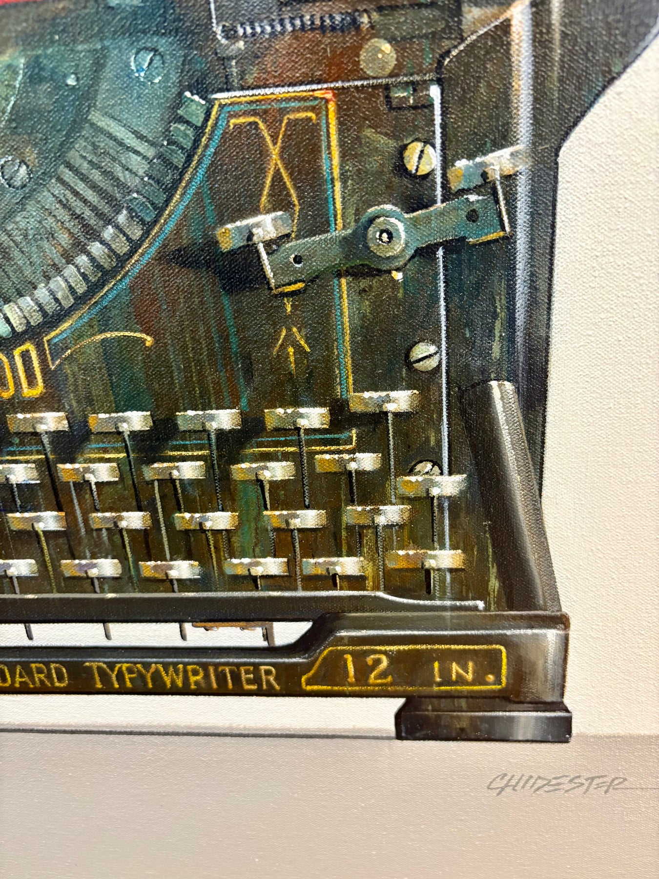 In her gorgeous photo-realistic still-lifes, American oil painter Wendy Chidester pays homage to lost relics of the past. Artifacts like vintage cameras and projectors, 40’s trunk luggage, bubblegum machines, childrens’ pedal cars and tricycles, and old telephones and typewriters are represented nostalgically in her work. She frames these objects as icons, memorializing the color and ingenuity of the past.