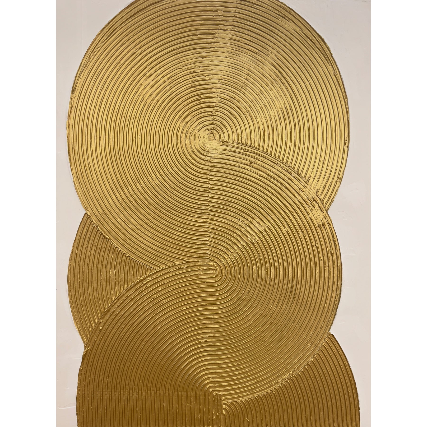 Jerilee, a Philadelphia-based artist working under the name ‘Lee in Cerulean’, creates striking minimalist pieces. For Lee, simple curves, asymmetry, and overlapping forms reflect the beautiful world around us—and find, within our surroundings, the continuity, serendipity, and at times mundane nature of everyday life. Deriving from the Japanese Wabi-Sabi philosophy’s embrace of imperfection, highly textural pieces show Lee’s freeform strokes, using a blend of joint compound, acrylic paint, and a myriad of other media. Under this philosophical orientation, ridges and built-up materials are a reminder that we continue to evolve, just as nature does.