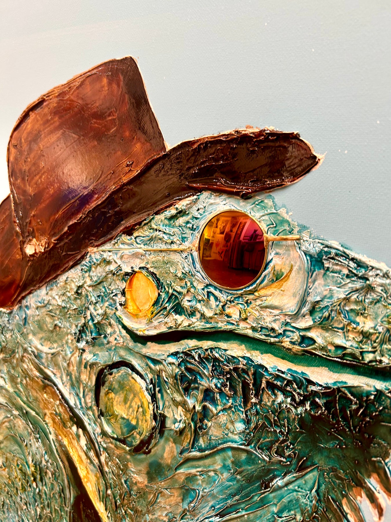 French graphic designer, illustrator, and painter Moogly creates semi-abstract "humanimal" portraits. His textured, splattered animals have oddly complex human expressions from bewilderment to apathy. Using acrylic, lacquer, and resin, he positions the monochromatic characters against a black void, allowing the eyes, marked by two machine washers, to speak. Moogly is deeply ashamed of the environmental harm caused by humans, so he allows animals to reflect this emotional damage back at us.