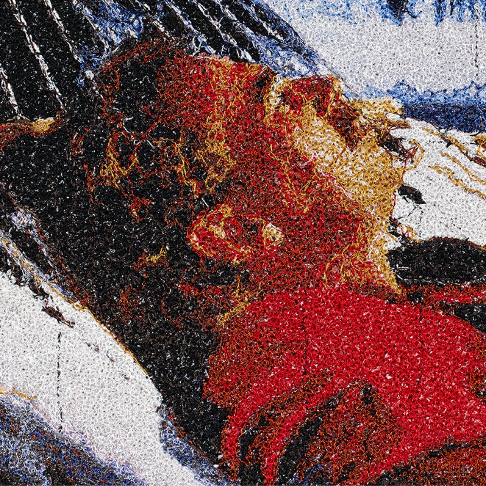 The album series begins with a vintage album sleeve, which serves as the foundation for intricate designs created with a variety of techniques such as yarn embroidery and photorealistic embroidery. Each album is carefully embroidered with over 200,000 stitches, taking more than 8 hours to complete. Upon completion, the album is adorned with embroidered patches and other decorative objects, making each one truly unique.