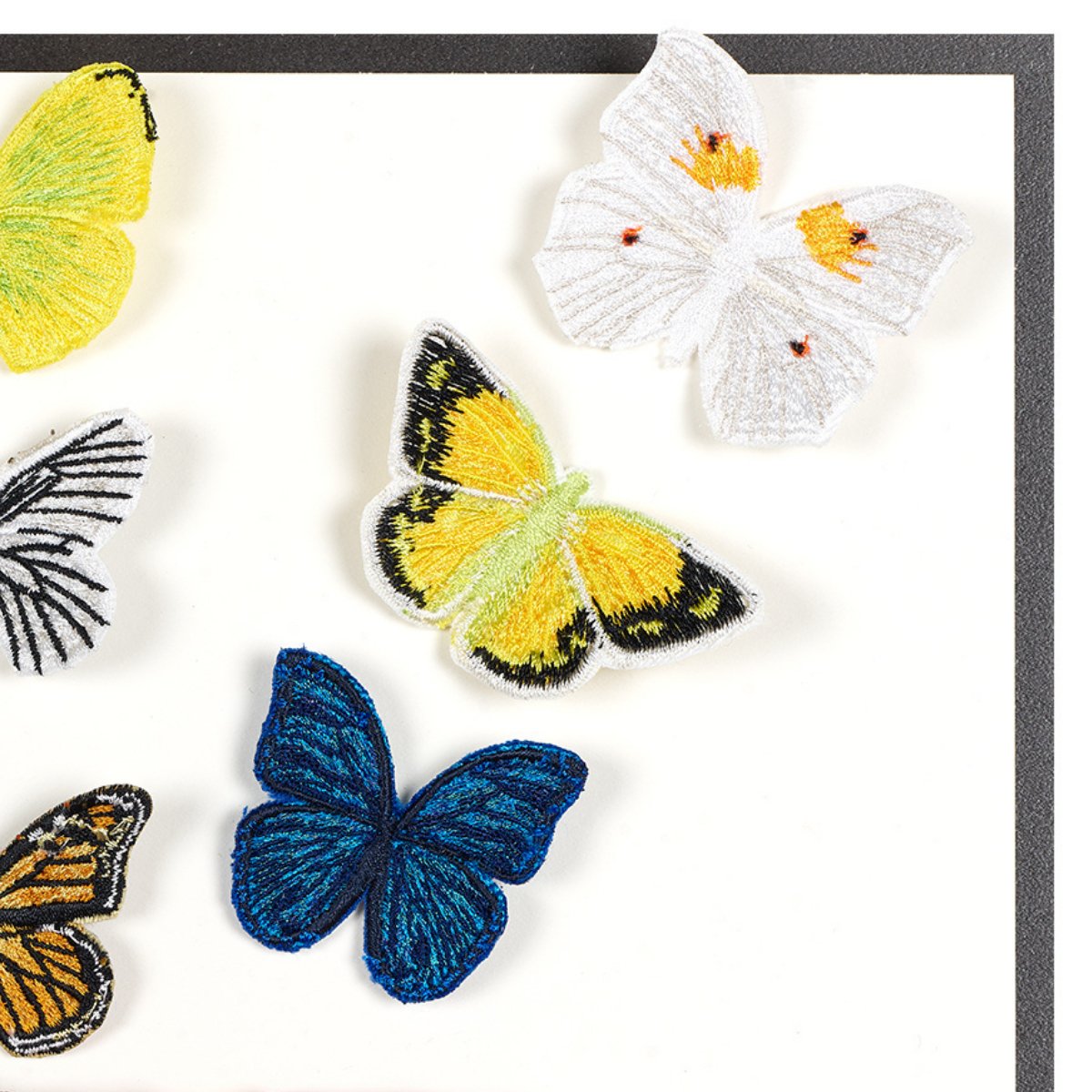 Stephen Wilson expertly crafts extraordinary and timeless designs using sustainable materials. Each art piece embarks on a journey, starting with an up-cycled luxury bag, box, silk scarf, or album. Wilson meticulously creates a bespoke embroidery design, delicately intertwining every stitch by hand. Once the design, colors, and elements are meticulously selected, the artistic process advances to the assembling stage. The boxes and bags undergo a mesmerizing transformation, metamorphosing into captivating canvases for Wilson's creations. The embroidery is seamlessly integrated into the chosen medium, unveiling a captivating texture that breathes life into the artwork. Appliqués, patches, and butterflies are individually stitched out, meticulously crafted, and delicately placed on each piece, culminating in a truly distinctive and unparalleled masterpiece. Finally, each artwork is beautifully presented, encased in an acrylic frame, ready to enchant all who behold it.