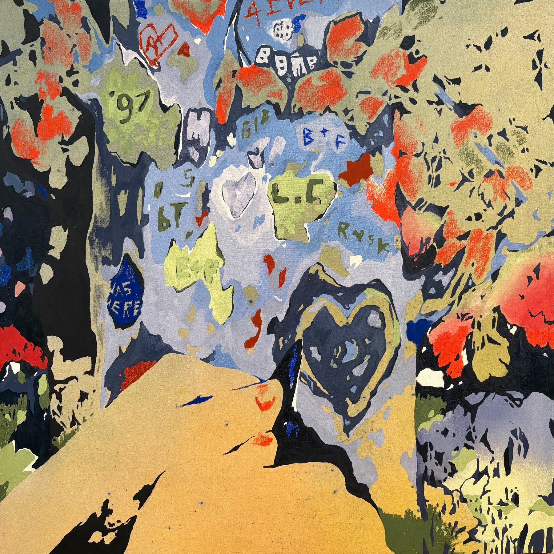 Erin Touey is a Philadelphia based artist, working and living in the city after her recent graduation from Tyler School of Art and Architecture. Touey’s work straddles the line between abstraction and representation. Fluid shapes, variation of line weight, non representational color, and distortion of perspective bring her often tangible subject matter into the abstract realm. With a limited palette consisting only of Phthalo Blue, Cadmium Yellow, and Quinacridone Magenta, Touey challenges herself to mix all of her colors. The white of the canvas is preserved deliberately, the negative space making shapes that sometimes jump forward or fall back.