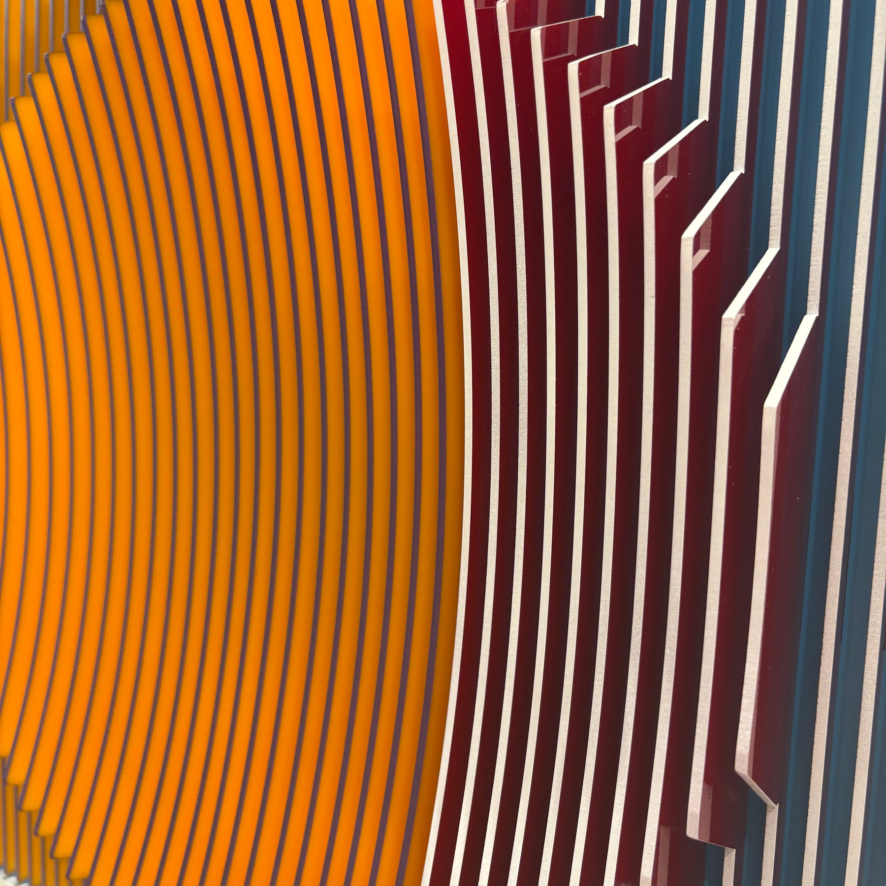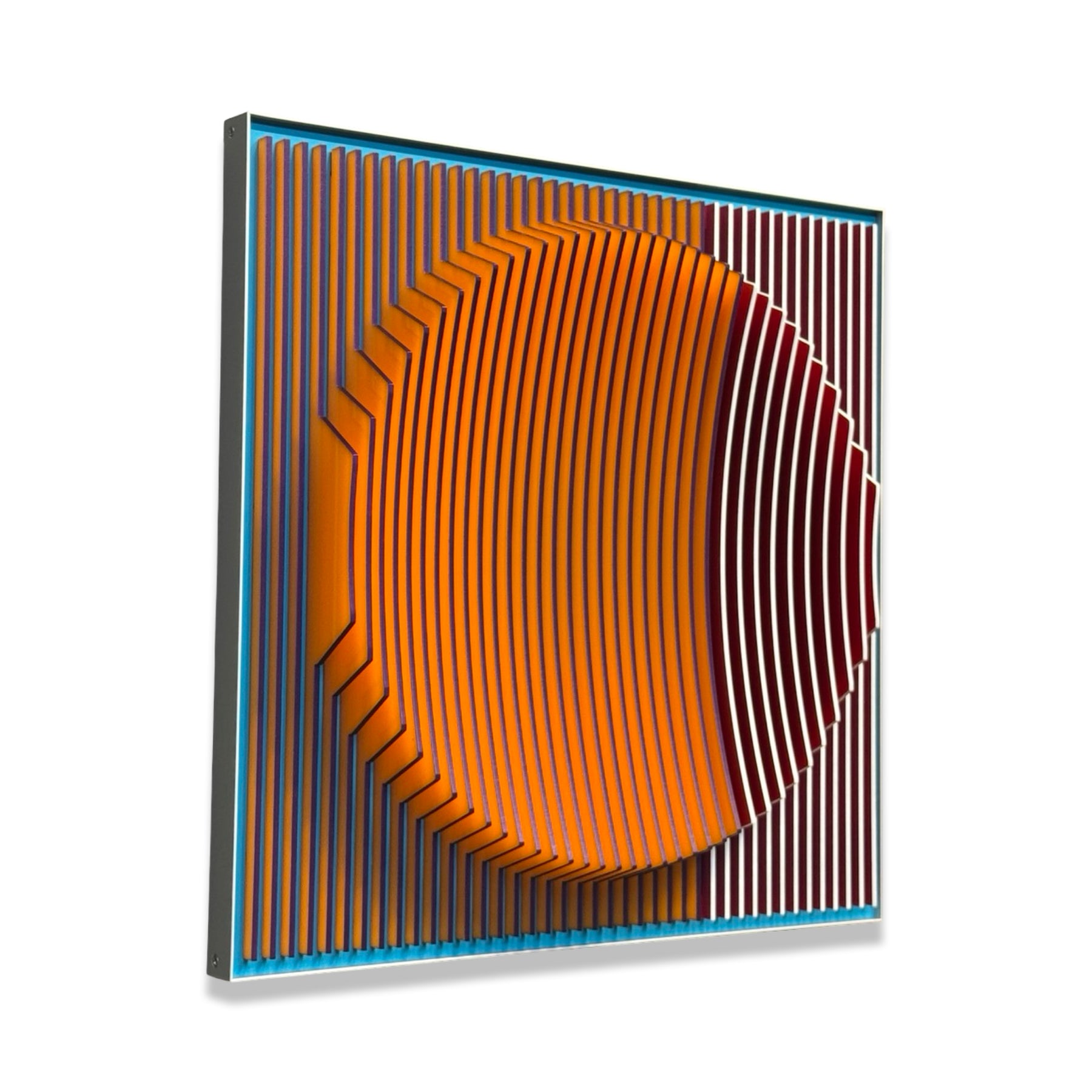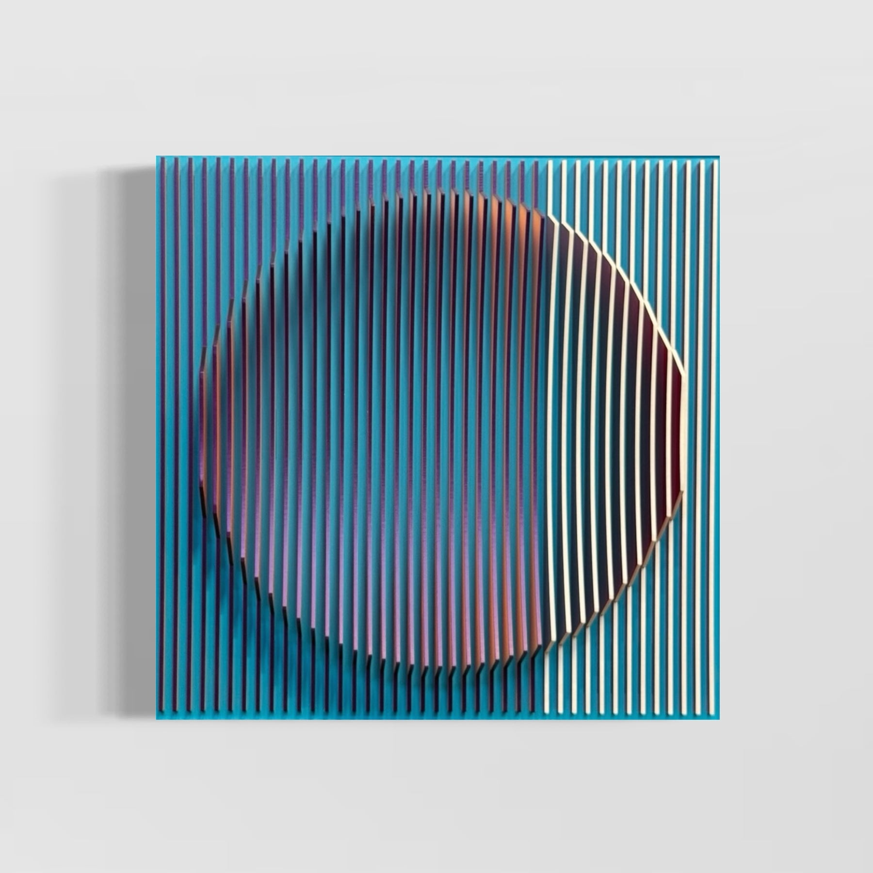 Margulis is drawn to scenes that allow him to explore composition in its most basic geometric forms: symmetry, asymmetry, volume, shapes, forms, limits, transitions and more. The challenge of creating balanced compositions in unexpected ways is fundamentally what attracts the artist’s eye and fuels his ideas. The artist begins with 3D digital software from which he designs and maps his 3D objects and compositions, ultimately cutting them into layers from different types of plastic and aluminum composites. Most of Jose’s work uses acrylic sheets and aluminum composites in various colors, textures, and patterns, often inspired further by traditional Mexican arts.