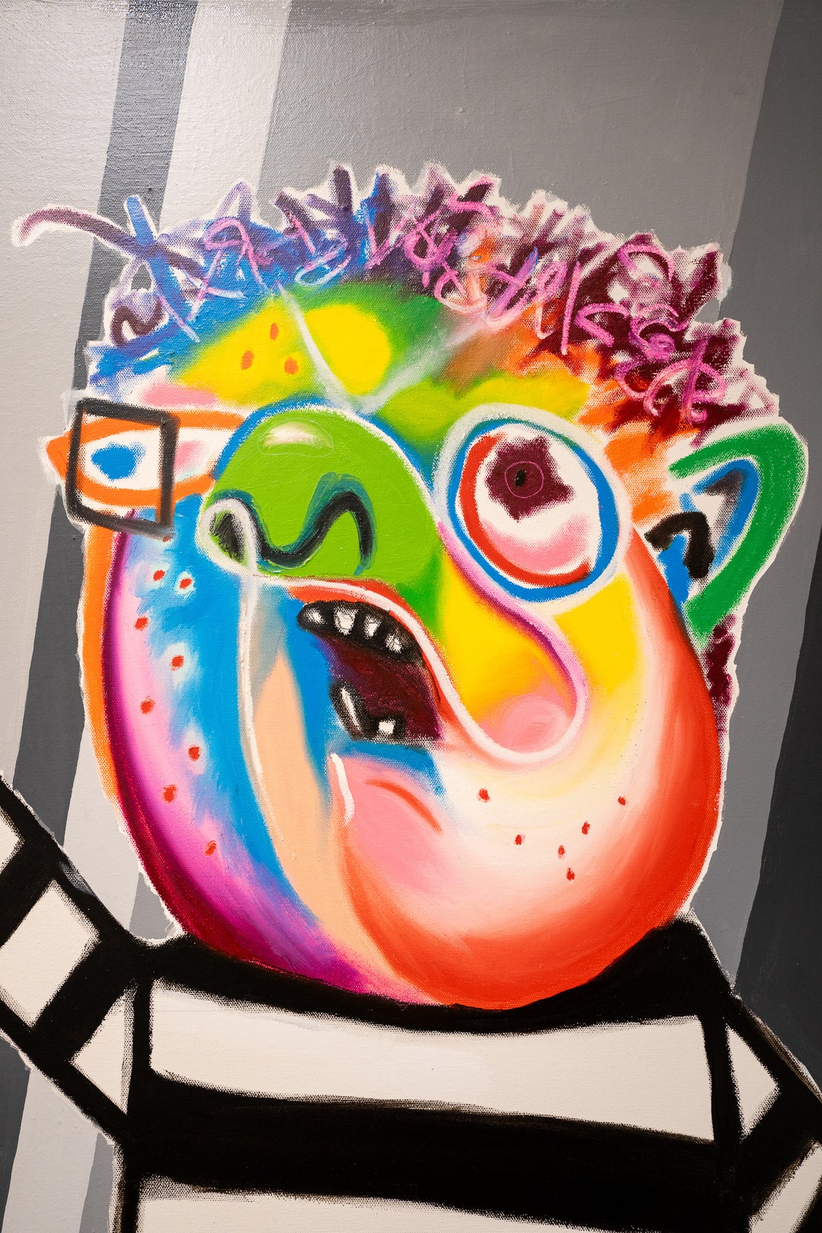 Mark Loughney: “I began this series when the Covid lockdown was beginning to be lifted in the state prisons. The first one I made was a self-portrait. My cellie saw it and said, “Hey do one of me!” Then other friends saw them and the same request followed, so I made a series of them. They use childlike imagery to illustrate one of the most salient paradoxes that exists in the carceral system: men and women are forced into a childlike dependence upon the state for every aspect of their lives, yet are expected to pull themselves up by their bootstraps to fix themselves while being denied any means to actually do so. It is a state of absurdity that I’ve illustrated with the Prison Buddies.”