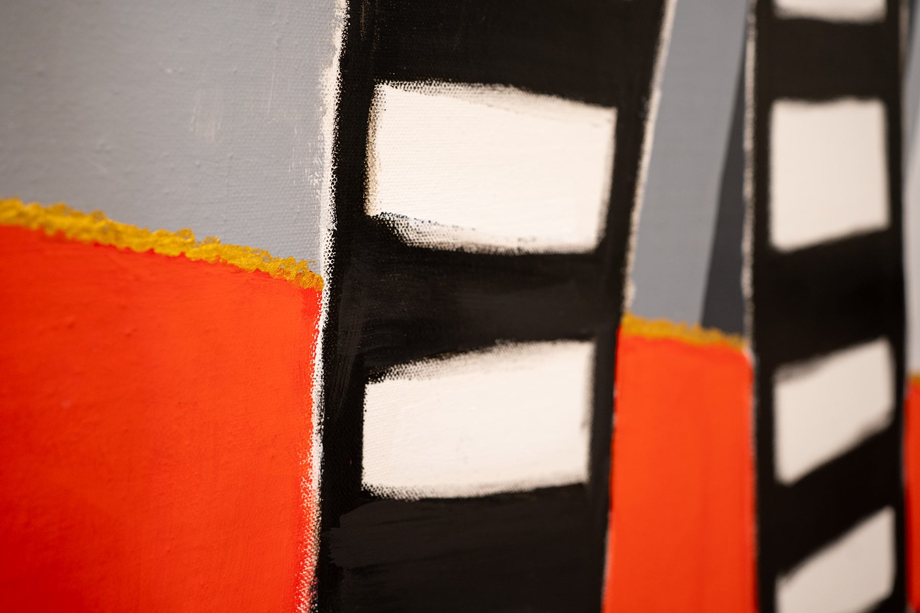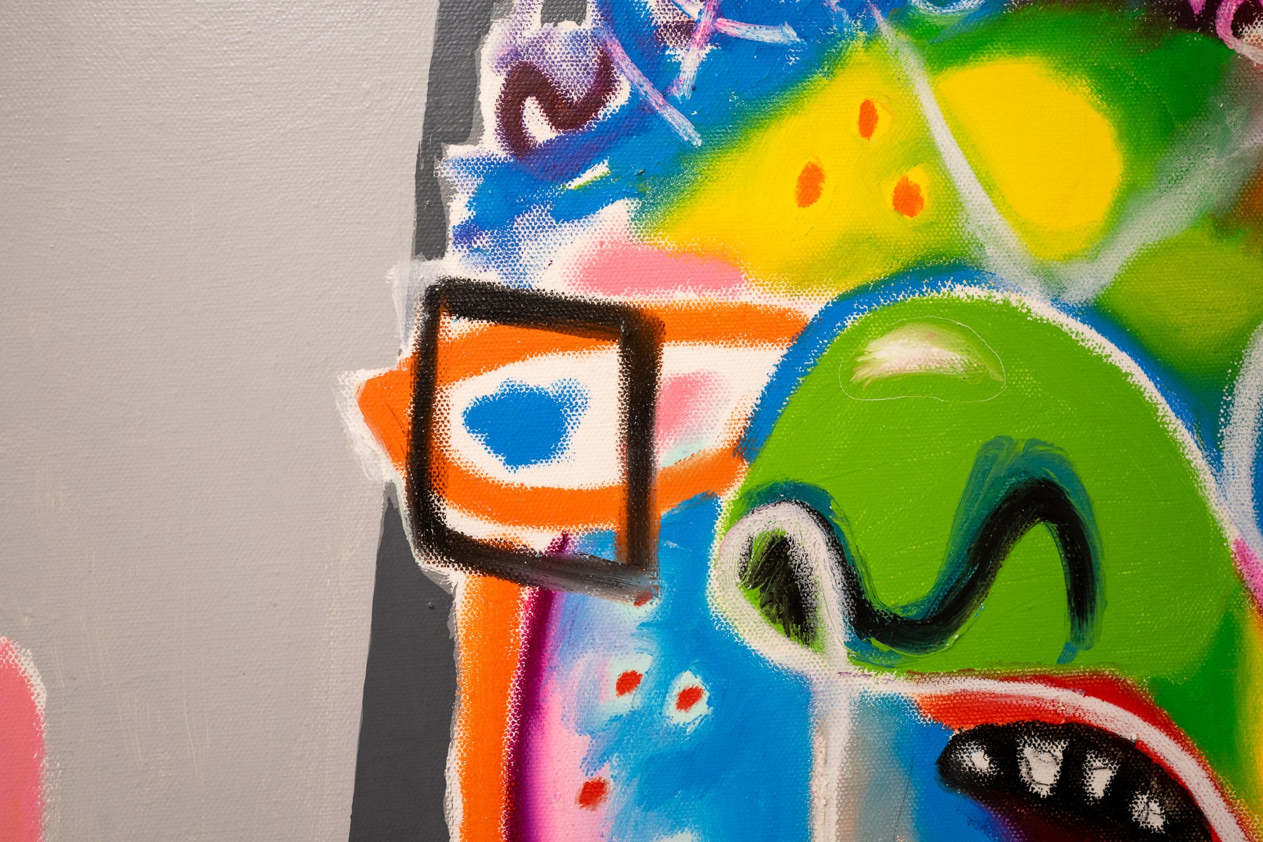 • Oil, acrylic, and flashe (vinyl paint) on stretched canvas