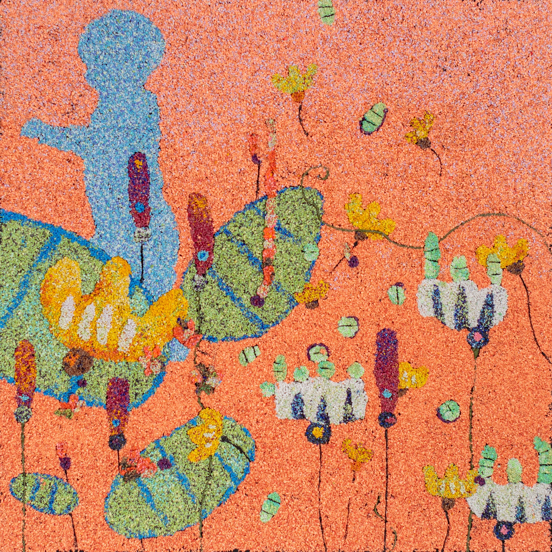 Bob Landström is an artist who primarily works with crushed, pigmented volcanic rock. His abstract paintings, with their highly granulated texture and color combinations, only achieved through such a medium, reconsider our relationship with meaning by eliciting the iconography of ancient languages, science, religions, and mysticism.