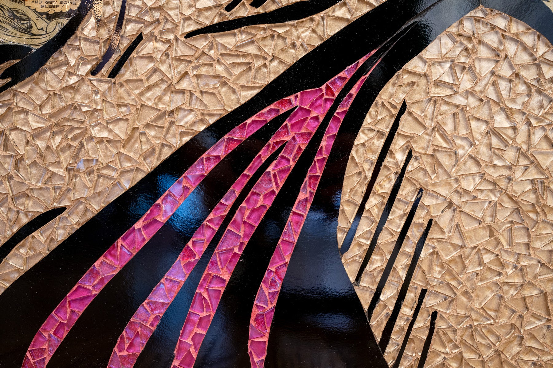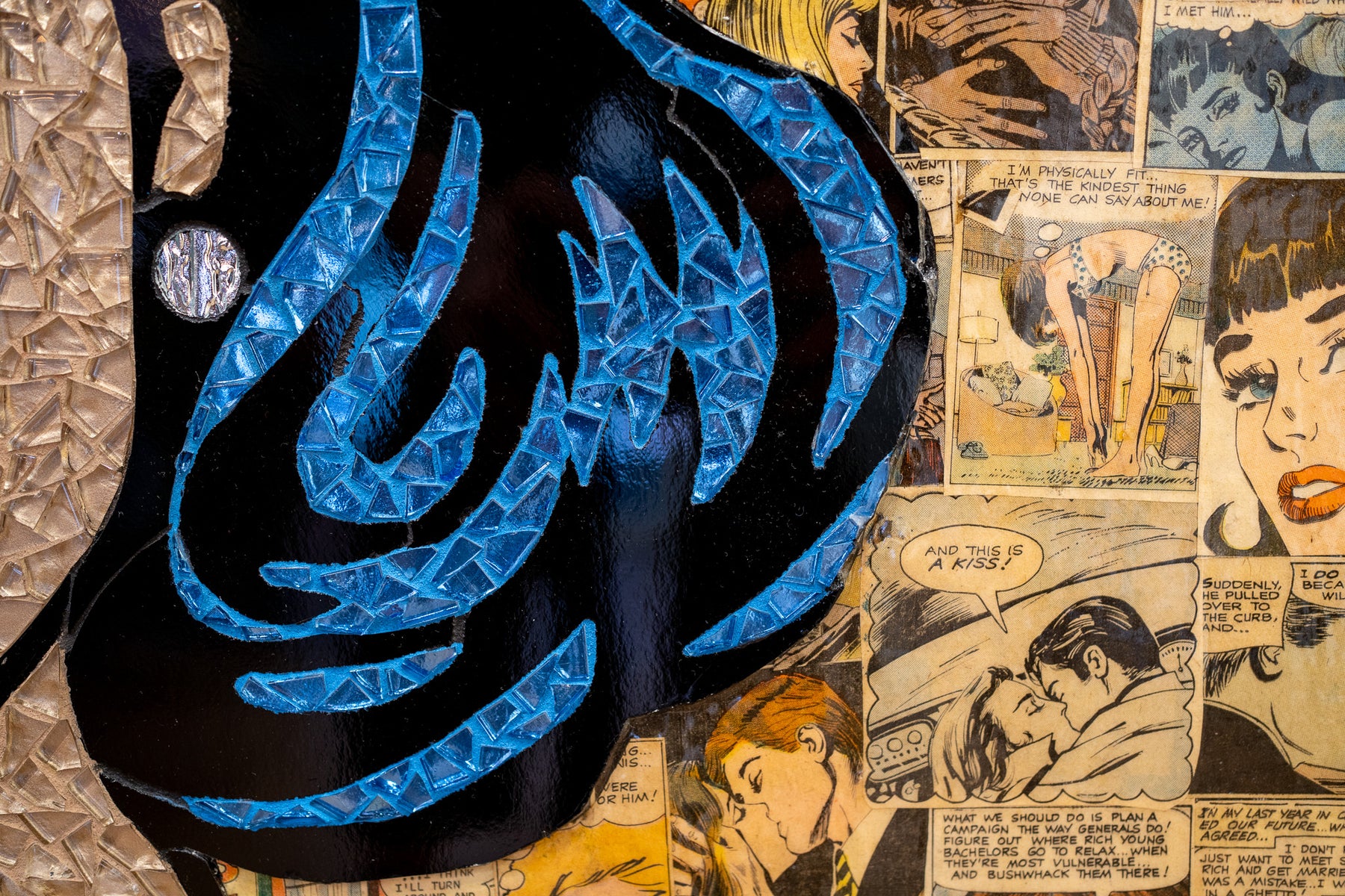 Sarah Fishbein, a contemporary glass mosaic artist based in the Atlantic Highlands of New Jersey, has been pushing the boundaries of visual art for nearly 20 years. Initially grounded in editorial video production, Fishbein artistic journey has led her to embrace the bold, graphic style of Lichtenstein Pop Art Mosaics. She infuses her mosaics with the vibrant, comic-book aesthetic of 1950s and romance comics, creating striking reinterpretations of pop culture through the timeless medium of glass.