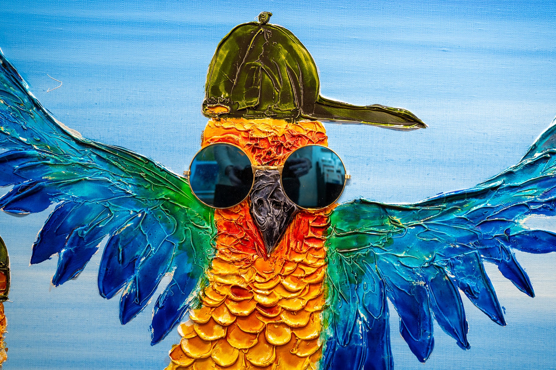 French graphic designer, illustrator, and painter Moogly creates semi-abstract "humanimal" portraits. His textured, splattered animals have oddly complex human expressions from bewilderment to apathy. Using acrylic, lacquer, and resin, he positions the monochromatic characters against a black void, allowing the eyes, marked by two machine washers, to speak. Moogly is deeply ashamed of the environmental harm caused by humans, so he allows animals to reflect this emotional damage back at us.